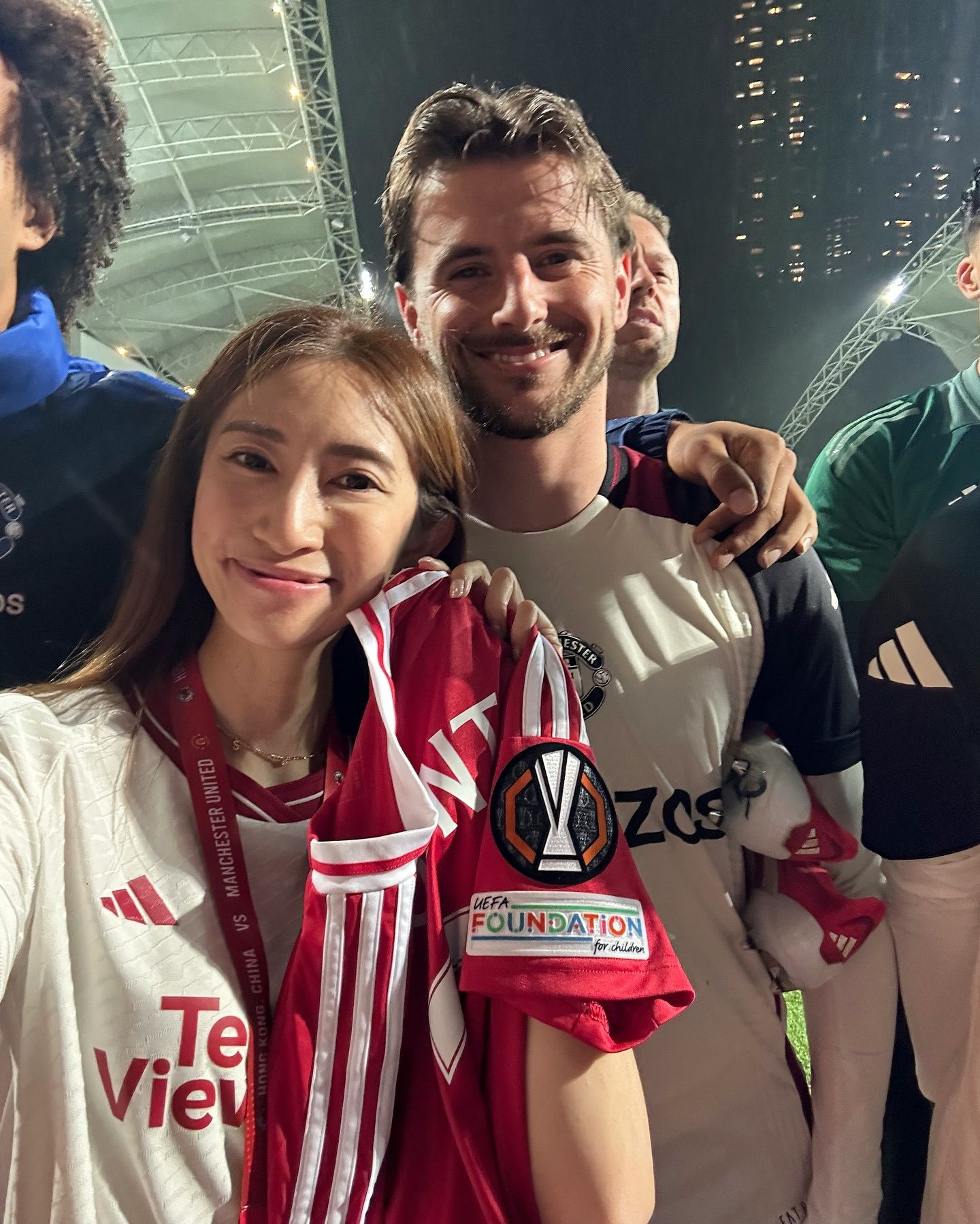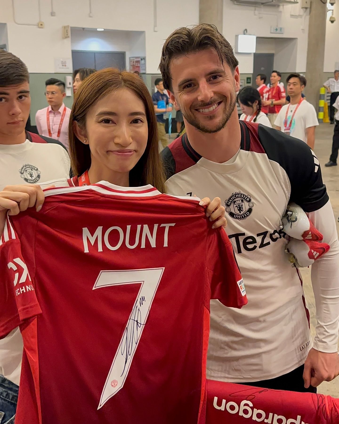 Sarah喺社交平台晒出多張合照,當中包括佢同最愛嘅球星Mason Mount合照,難得可以近距離同偶像合照兼拎到簽名球衣,Sarah當然超級開心,連帶喺帖文中亦難掩興奮心情:「Enough said🥹❤️ @masonmount !!! I love you soooo much!!!!!!!!😭😭😭❤️🔥❤️🔥❤️🔥」而男友何廣沛則留言:「帶女友去追星成功之夜7️⃣❤️❤️❤️」![]()