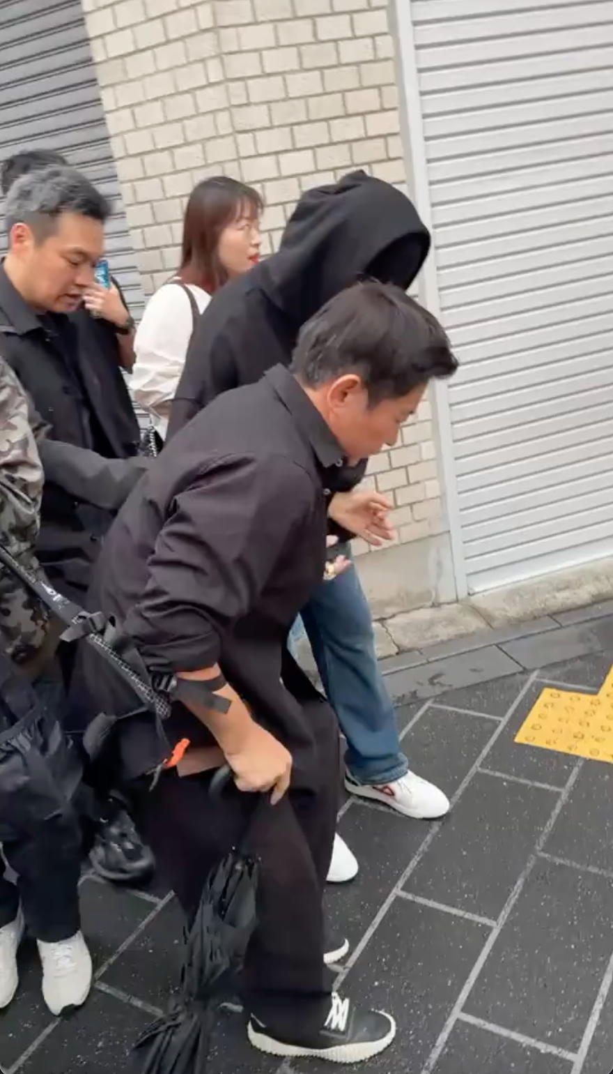 周董唔只去到邊都寸步難行,就連安全都成問題,同行嘅化妝師杜哥就被人推倒在地,當時周董即時上前扶起對方,片中所見杜哥企起身後要靠雨傘借力先可以企定,不過身旁追拍嘅fans就完全冇理,繼續舉機影住周董。![]()