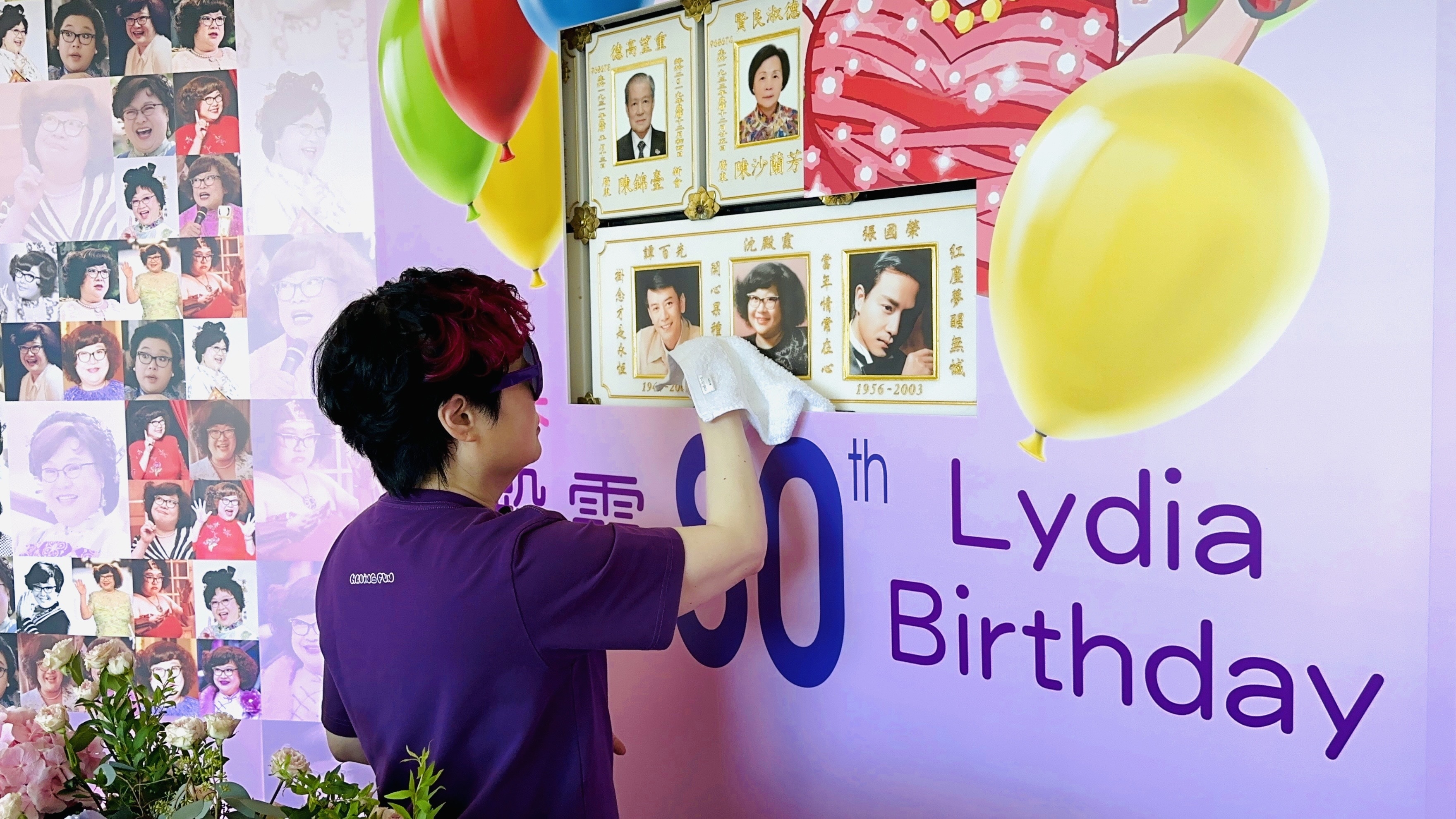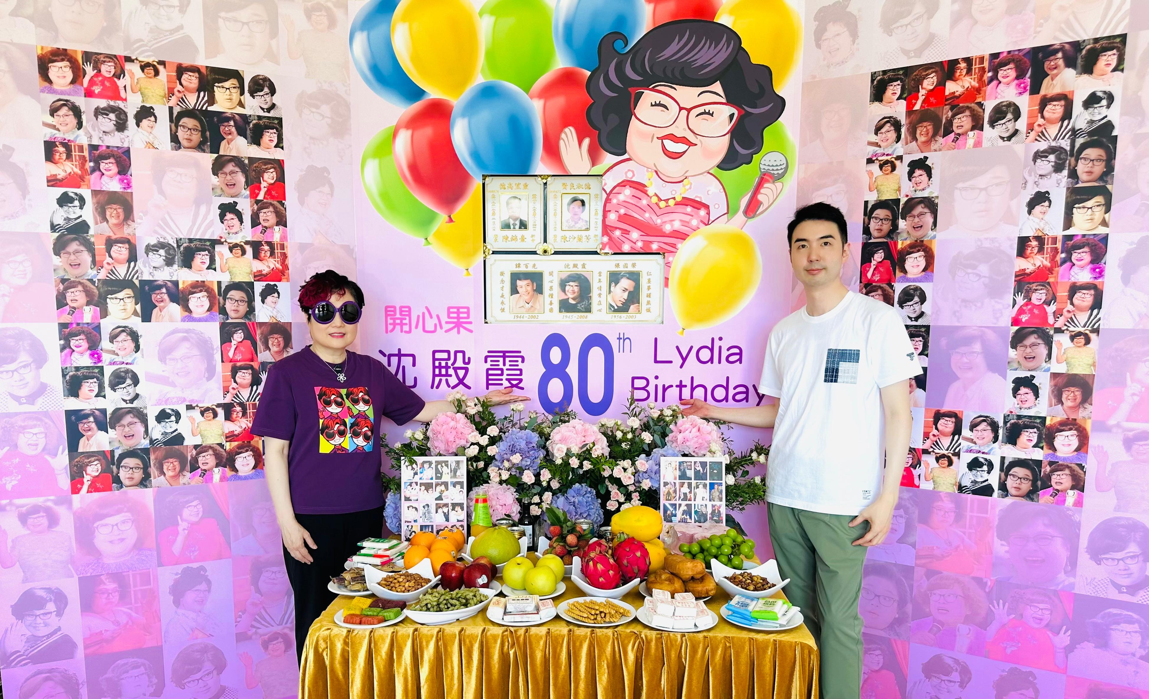 陳太特意製作巨型背景板,上面除咗印有卡通版嘅肥姐外,仲有以無數張肥姐經典角色劇照組成嘅「80」數字,而祭台上則放有肥姐生前最愛嘅紫色及粉紅色繡球花,陳太表示:「時間飛逝,轉瞬肥姐已離世17年,始終她是我們最親切的開心果,我希望大家都會記住肥姐的笑聲。」![]()
