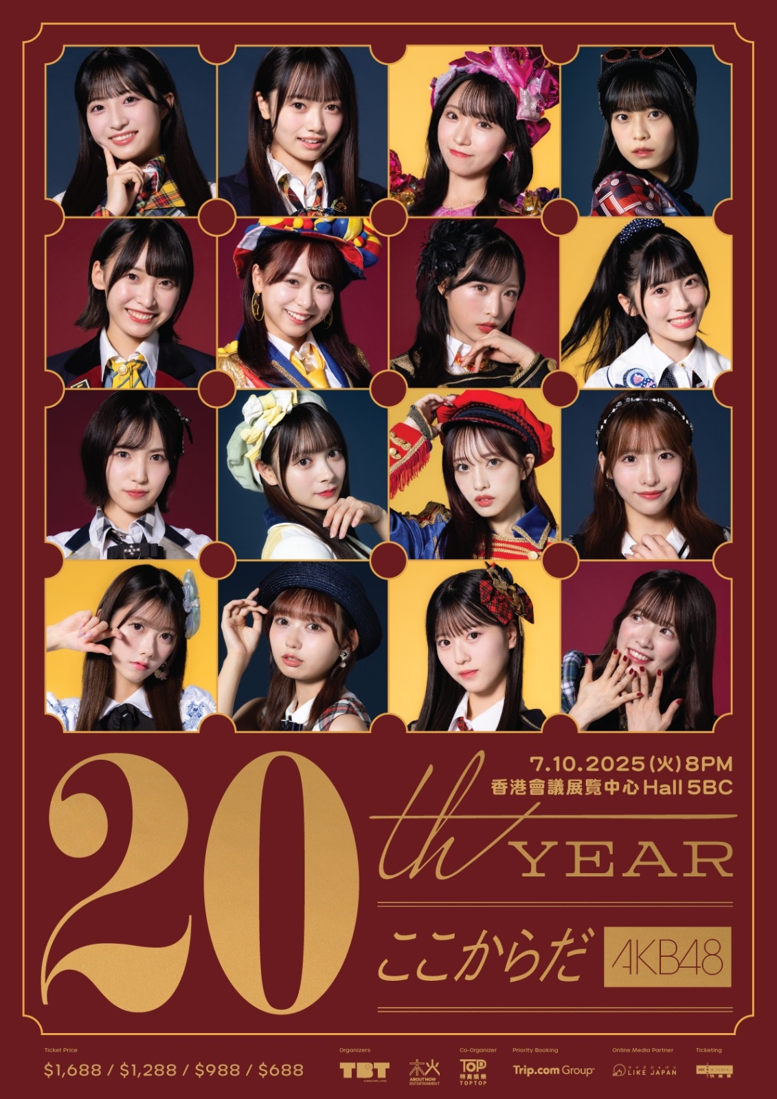 AKB48由製作人秋元康於2005年創立。為咗慶祝成軍20周年,官方宣布將於今年8月起舉行巡迴演唱會。首站定於8月喺愛知縣展開,其後會移師大阪同廣島;9月同10月就會喺上海同香港開騷。至於尾場雖然未正式官宣,但就有消息指出應該喺12月會喺東京嘅武道館舉行。![]()