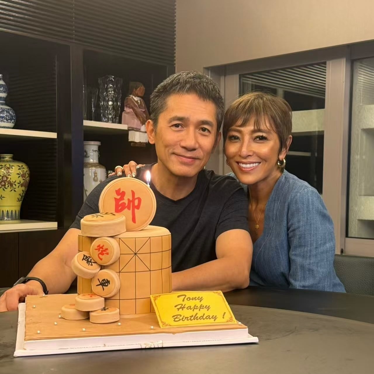 另外,劉嘉玲好友上山詩納亦為偉仔慶祝生日,佢仲花心思準備咗一個象棋造型蛋糕,上面有隻巨型寫上「帥」字嘅巨型象棋,完全切合偉仔,而佢哋身處嘅地方應該係嘉玲同偉仔嘅豪宅內,相中所見身後嘅層架上放滿中式古玩,極有品味。