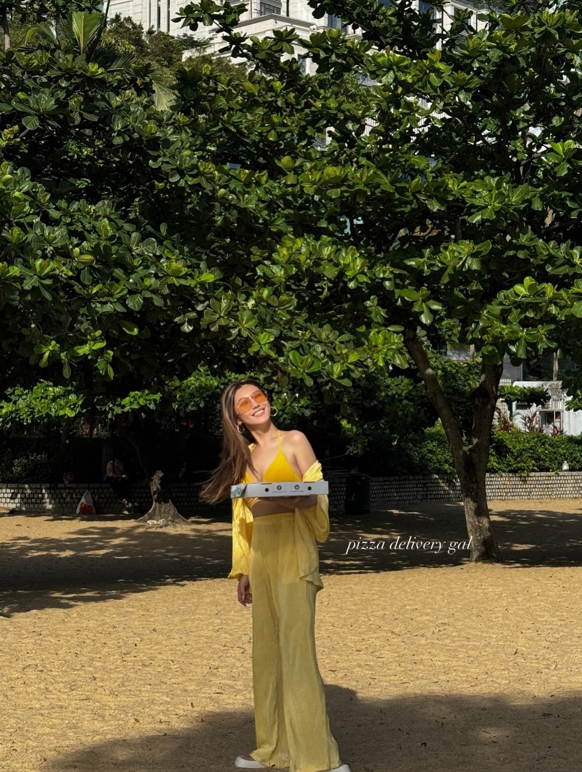 最近支支罕有喺社交平台大派福利,上載一輯生活照片,支支穿上芥黄色比堅尼Top騷出身材,又坐、又企、又玩沙大擺甫士影相,由陽光燦爛嘅下午玩到黃昏日落,期間仲買咗個Pizza分享,又同朋友一齊飲吓嘢Chill吓,睇得出支支非常Relax,亦有一啲佢去扮靚做Facial素顏嘅畫面。![]()