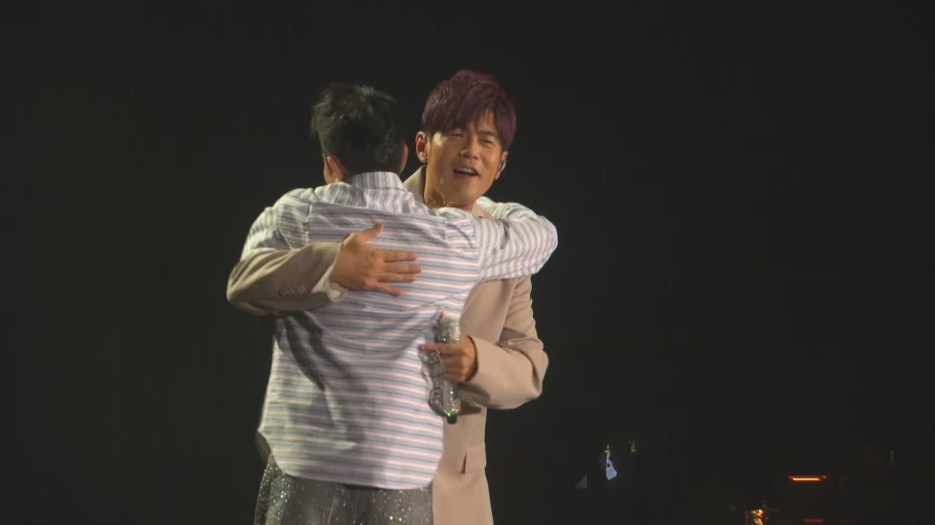 周杰倫三場香港站演唱會嚟到尾場,繼第二場請嚟日本男神山下智久引起哄動之後,呢晚佢更請嚟舞台王者郭富城做嘉賓。城城嘅出現,即刻令全場熱血沸騰,周董更同城城大跳《Baby Shark》,跳完兩人仲嚟個大大嘅擁抱,周董忍唔住話「太開心啦」。![]()
