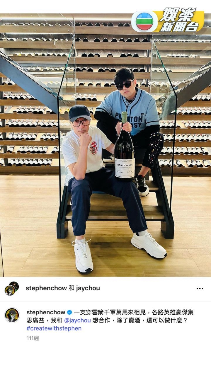 啱啱完成香港站演唱會嘅 周董,日前就相約星爺秘密見面。2023年星爺同周董相約一齊品嚐美酒,當時佢哋各自拎住一支紅酒合照;而呢次相見,佢哋就選擇喺可以俯瞰香港景色嘅池邊,邊品茶邊傾偈。