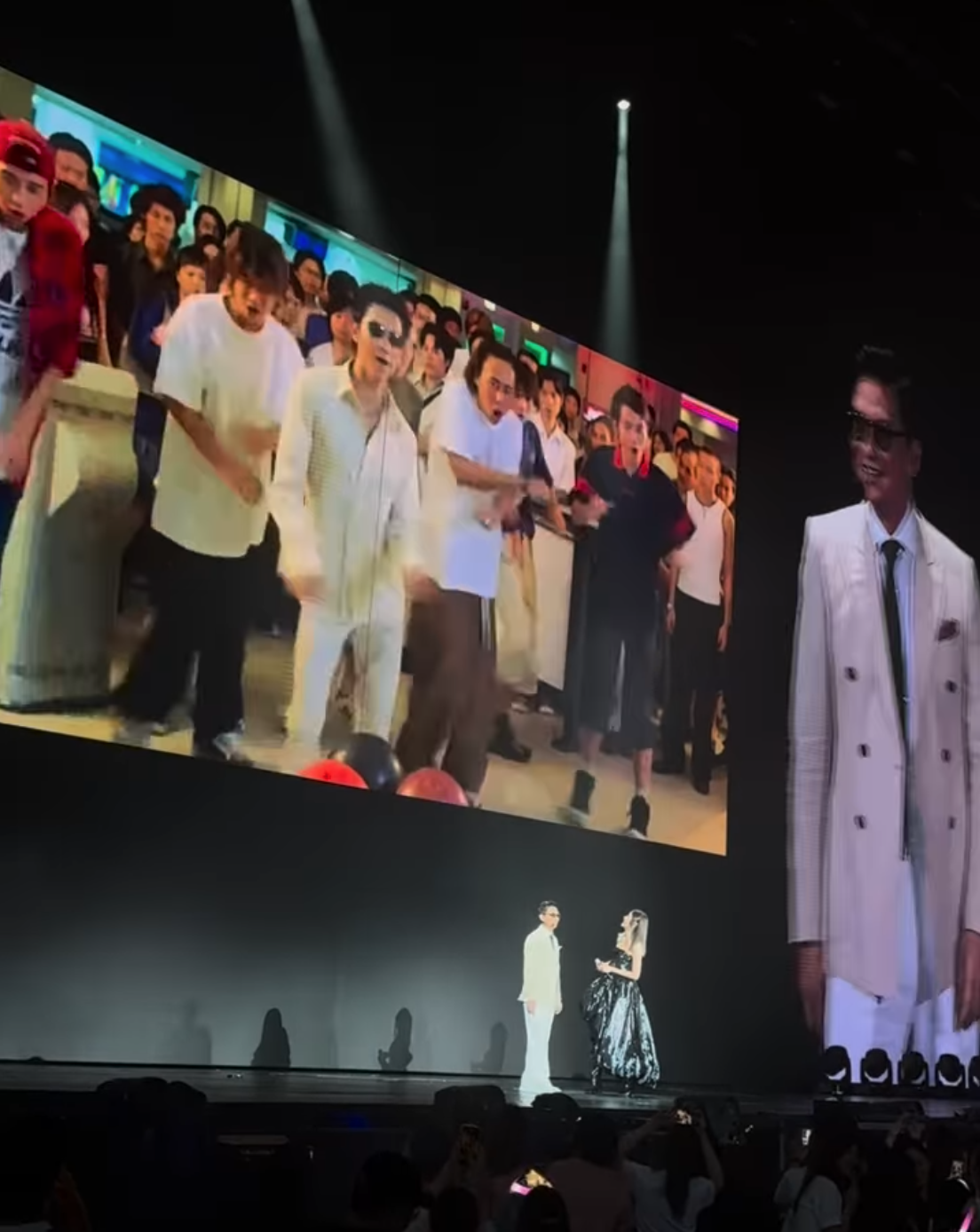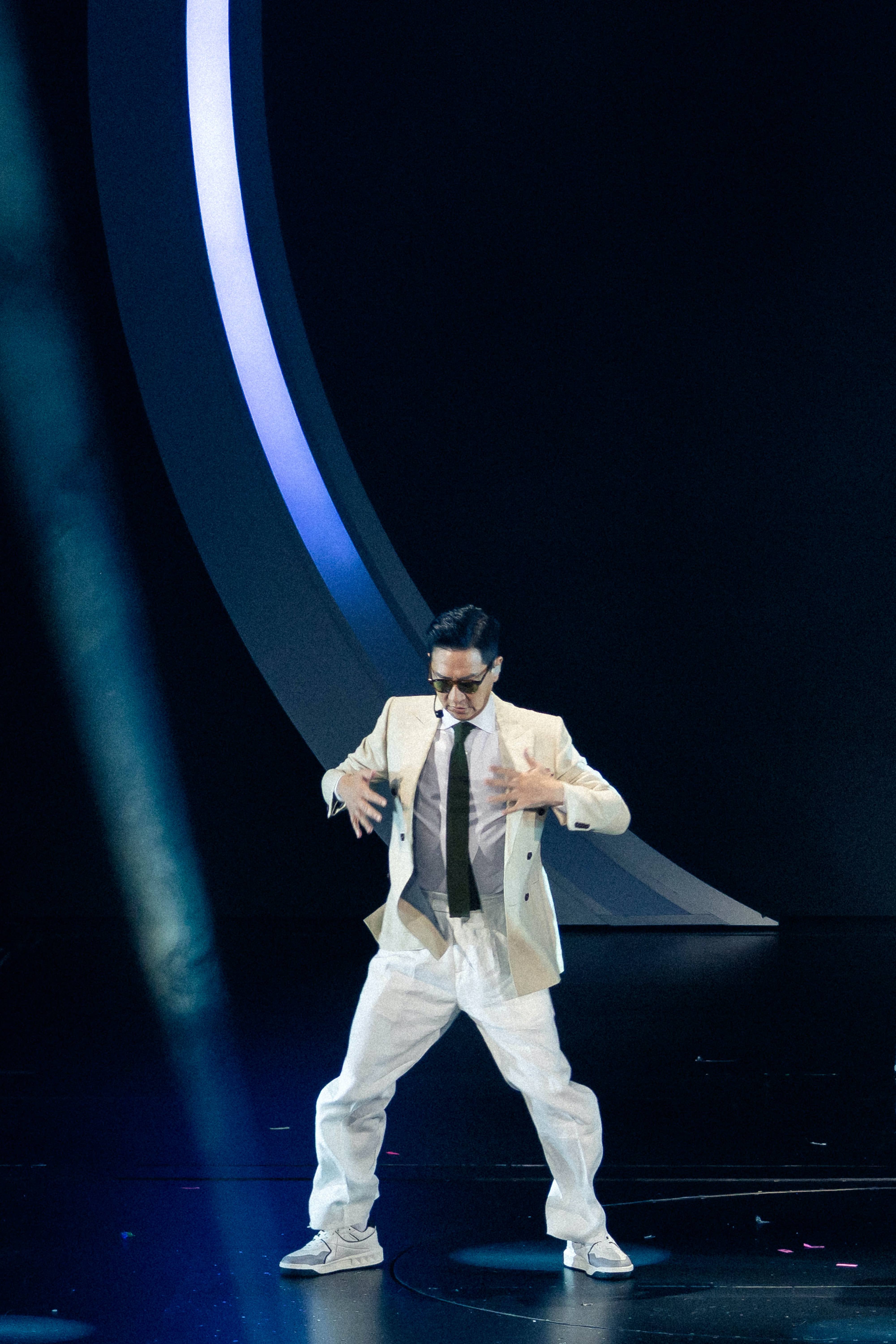 隨即大銀幕播放家輝喺唔同電影中嘅經典唱歌片,當中包括《化骨龍與千年蟲》入面嘅《灰色軌跡》、《金雞SSS》中嘅《誰明浪子心》,以及《中華賭俠》內改編版嘅《眼睛想旅行》。而喺Kelly揀唱《眼睛想旅行》後,本身安靜企喺旁邊嘅家輝,當歌曲去到中段,突然「舞魂覺醒」,重新演繹呢段經典舞台,之後Kelly仲加入一齊跳,睇到台下觀眾尖叫不斷。![]()