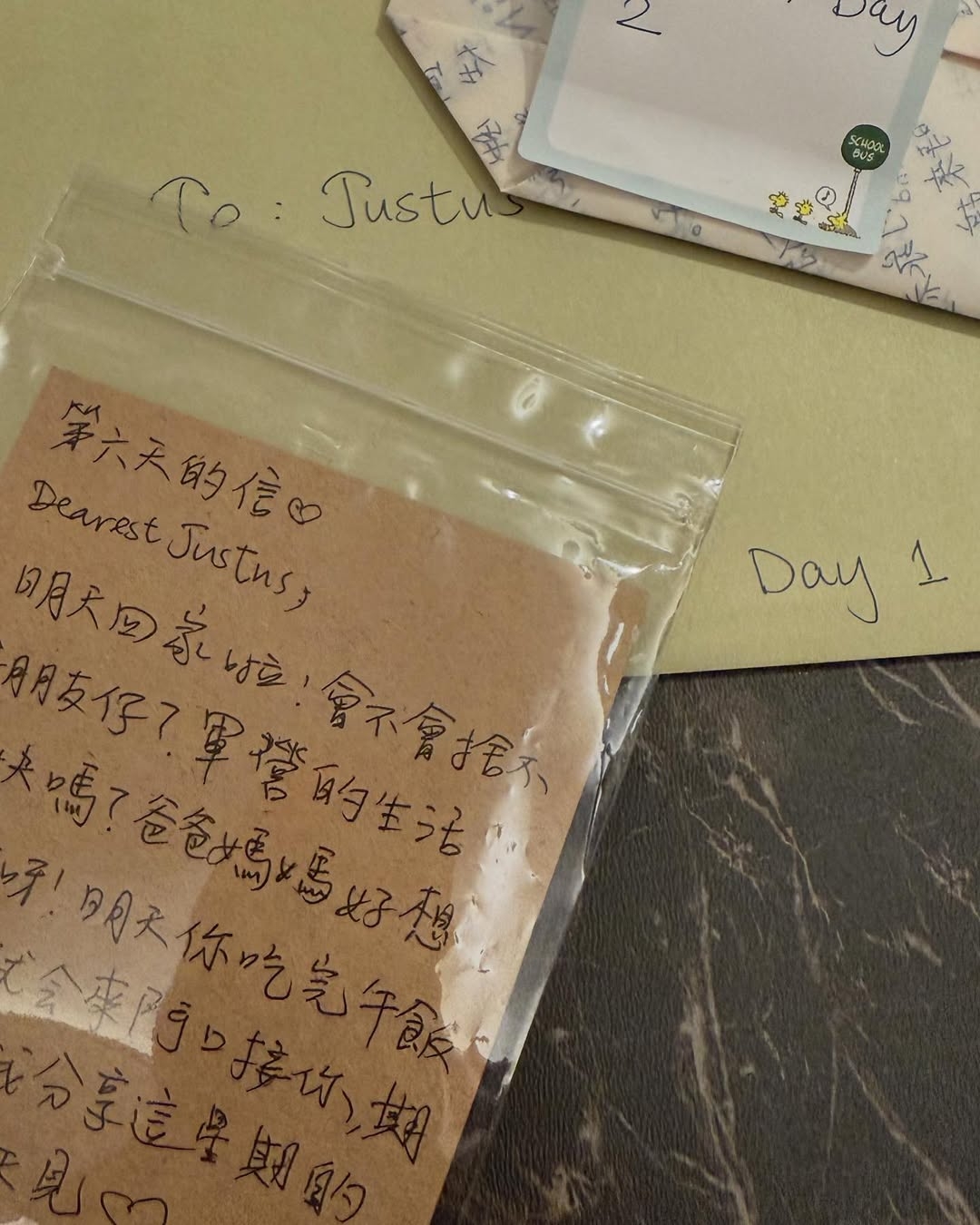 雖然只係同BBQ分開咗2日,婉婉就已經忍唔住思念之情,喺文中表示:「希望BBQ先生繼續訓練順利,聽聽話話,MaMa 會好掛住你,為你祈禱。」更話出發前晚上,自己寫咗三封信俾生活老師,由老師轉交囝囝,寫嘅時候更一邊寫一邊眼濕濕。婉婉仲話,呢次唔只係BBQ嘅學習機會,亦都係自己一個寶貴經驗,大家要齊齊走出Comfort Zone,小朋友學習自己照顧自己,學習有紀律生活,自己要學習捨得,學習Let Go,信任BBQ。