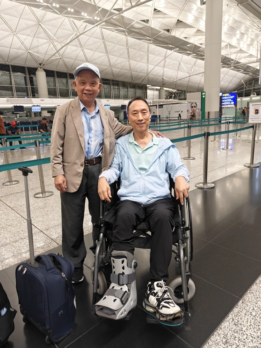 鄔友正為慶祝今個月17號嘅71歲生日,一早就同家人計劃好去歐遊三星期,不過出發前壽星公不慎跌倒,導致右腳板骨裂,但為咗唔令家人失落,鄔友正忍痛上機,全程堅持用拐杖同家人四出遊玩。![]()