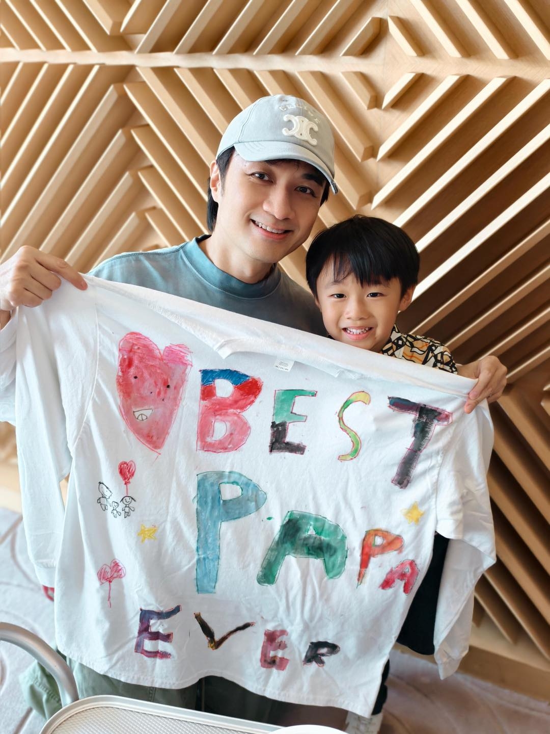 Sally同阿Lam而家有孫抱,另一邊廂嘅 古巨基 相信就有仔萬事足喇,啱啱過咗53歲生日嘅基仔,亦喺社交平台大曬囝囝Kuson送咗全世界只得一件嘅Tee比自己,呢件Tee嘅字同圖畫都出自Kuson嘅手筆,Tee前面寫住「Best Papa Ever」、後面則寫住「生日快樂超人爸爸,我愛你」。![]()