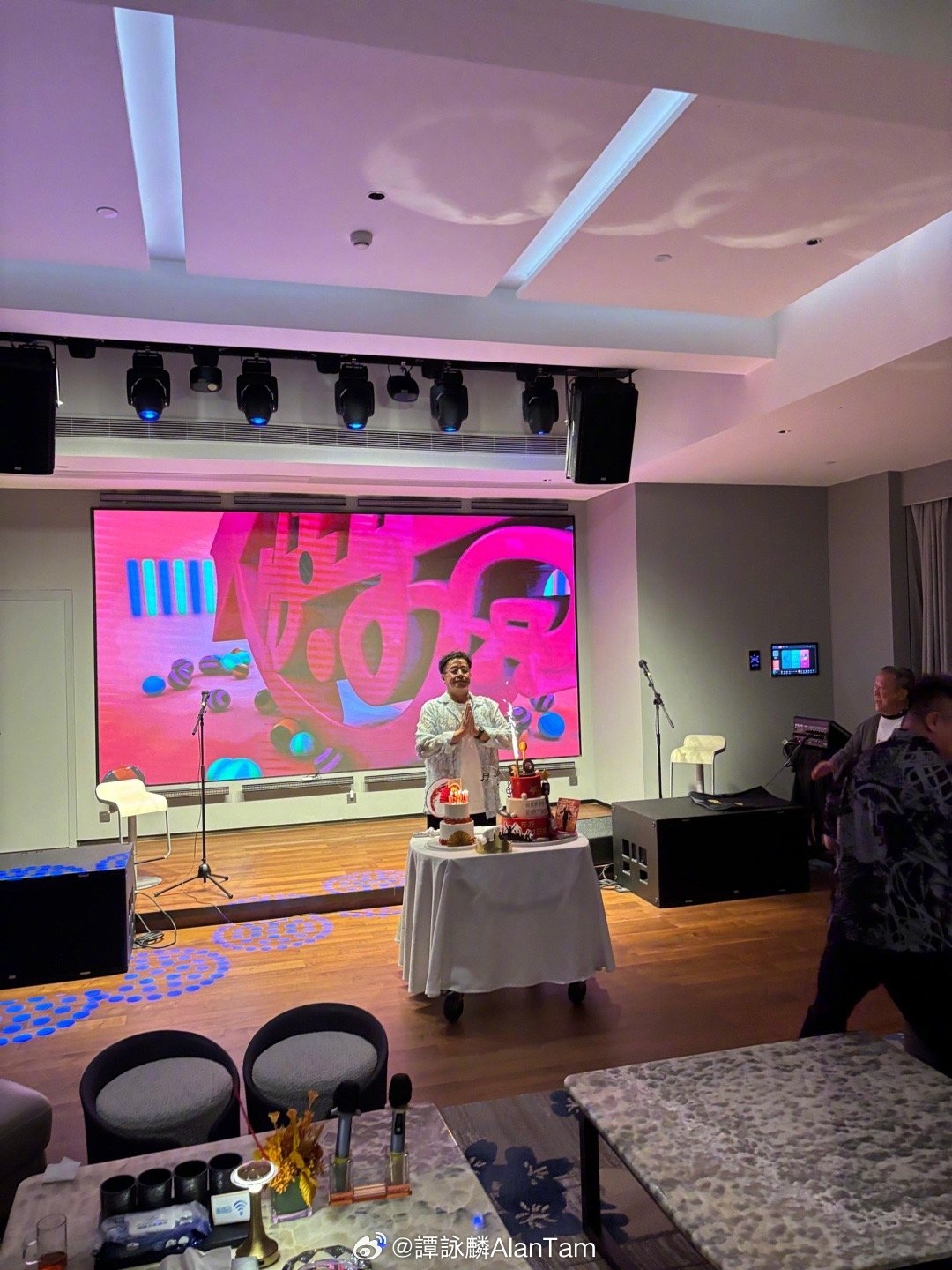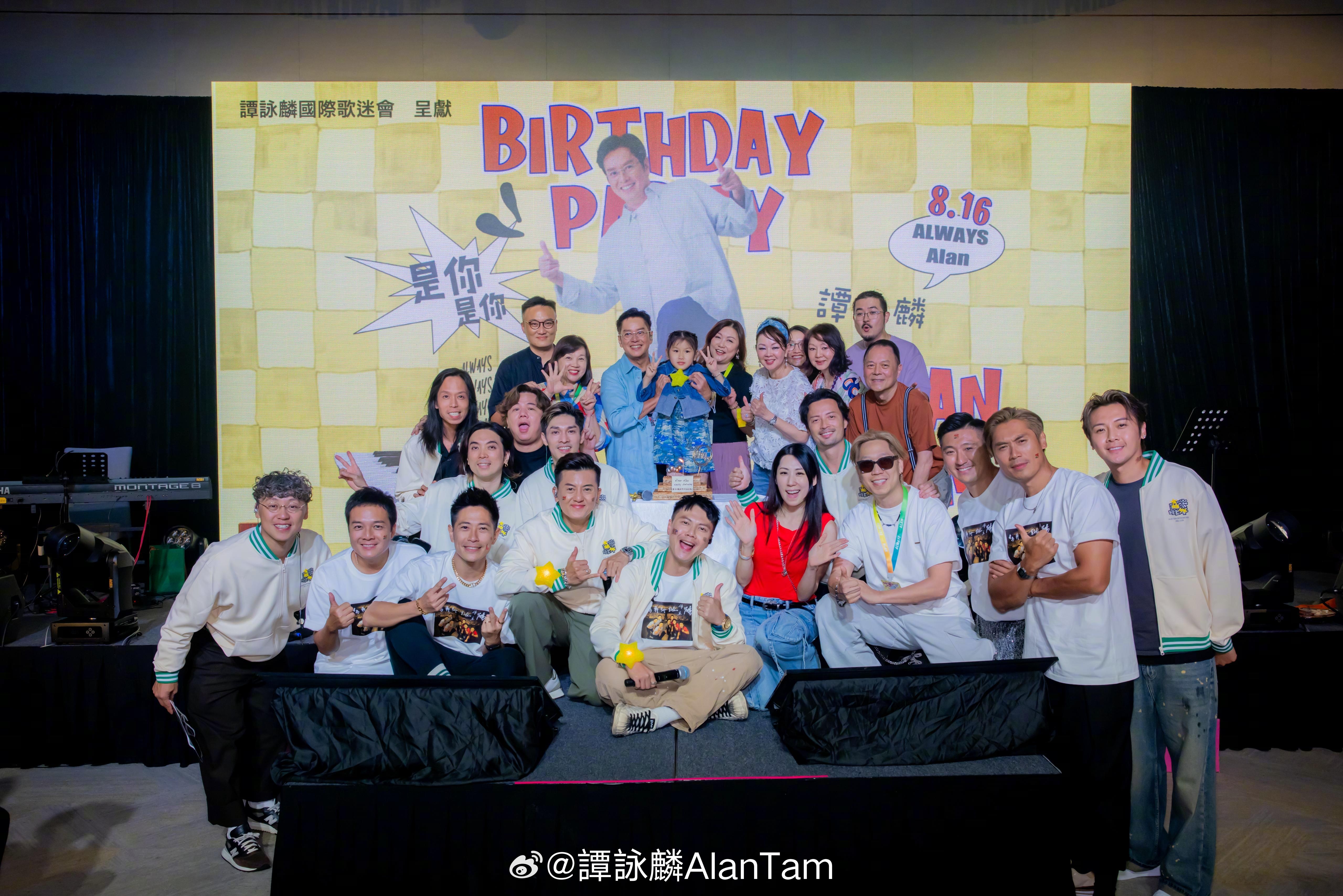 而譚詠麟國際歌迷會日前為偶像舉行大型生日聚會,見場內悉心佈置,阿倫感謝歌迷會給予好多驚喜及歡樂,並寫道:「看得出是經過細心的安排👏令我⋯⋯難忘👌難忘🤞難忘👍 Thank you so much! btw the birthday cake is so good 😊 so yummy😋。」