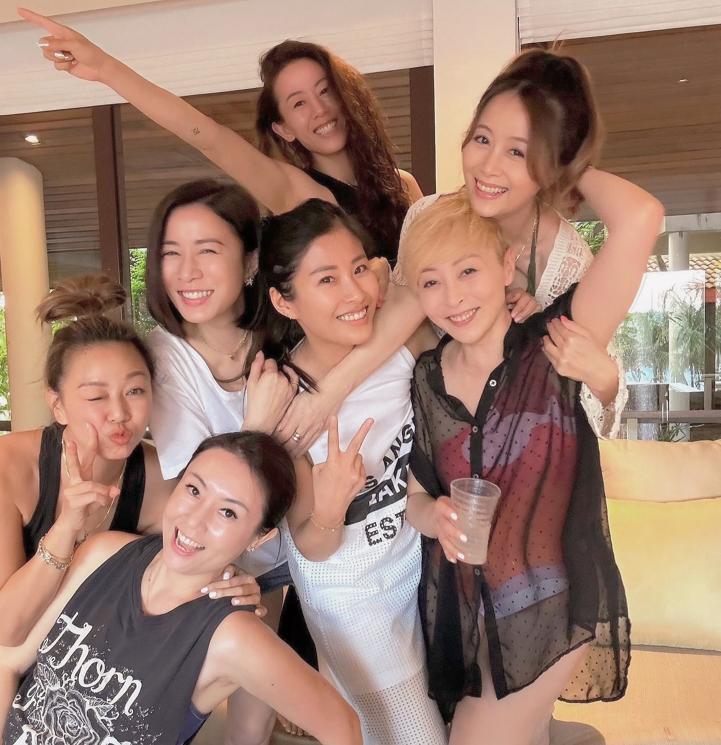 「七魔女」趁住暑假兼且阿佘忙完兩套重頭劇《正義女神Themis》同《新聞女王2》拍攝之後,七姊妹就再一次約埋去旅行叉吓電,可惜今次閨蜜之旅獨欠文頌嫻。阿佘同家蔚都先後喺社交平台分享開心旅行相,阿佘仲悉心分享埋舊年閨蜜嘅旅行相,而兩張相仲要表情同甫士都係相同,再寫上「今年。去年。期待明年!」家蔚亦深情寫上希望大家友誼天長地久。