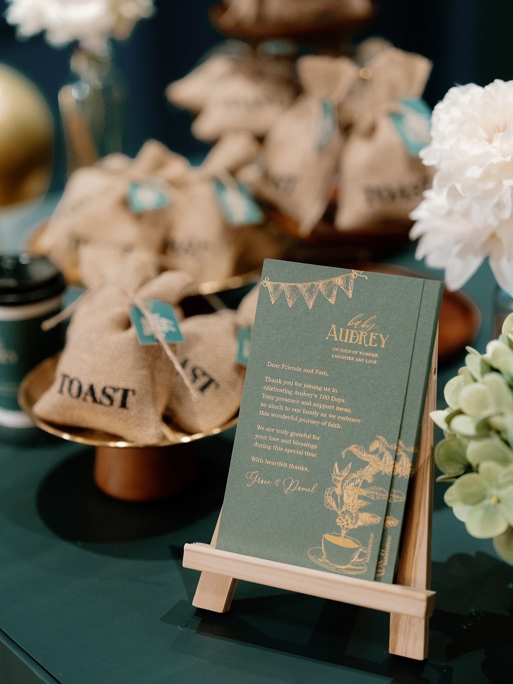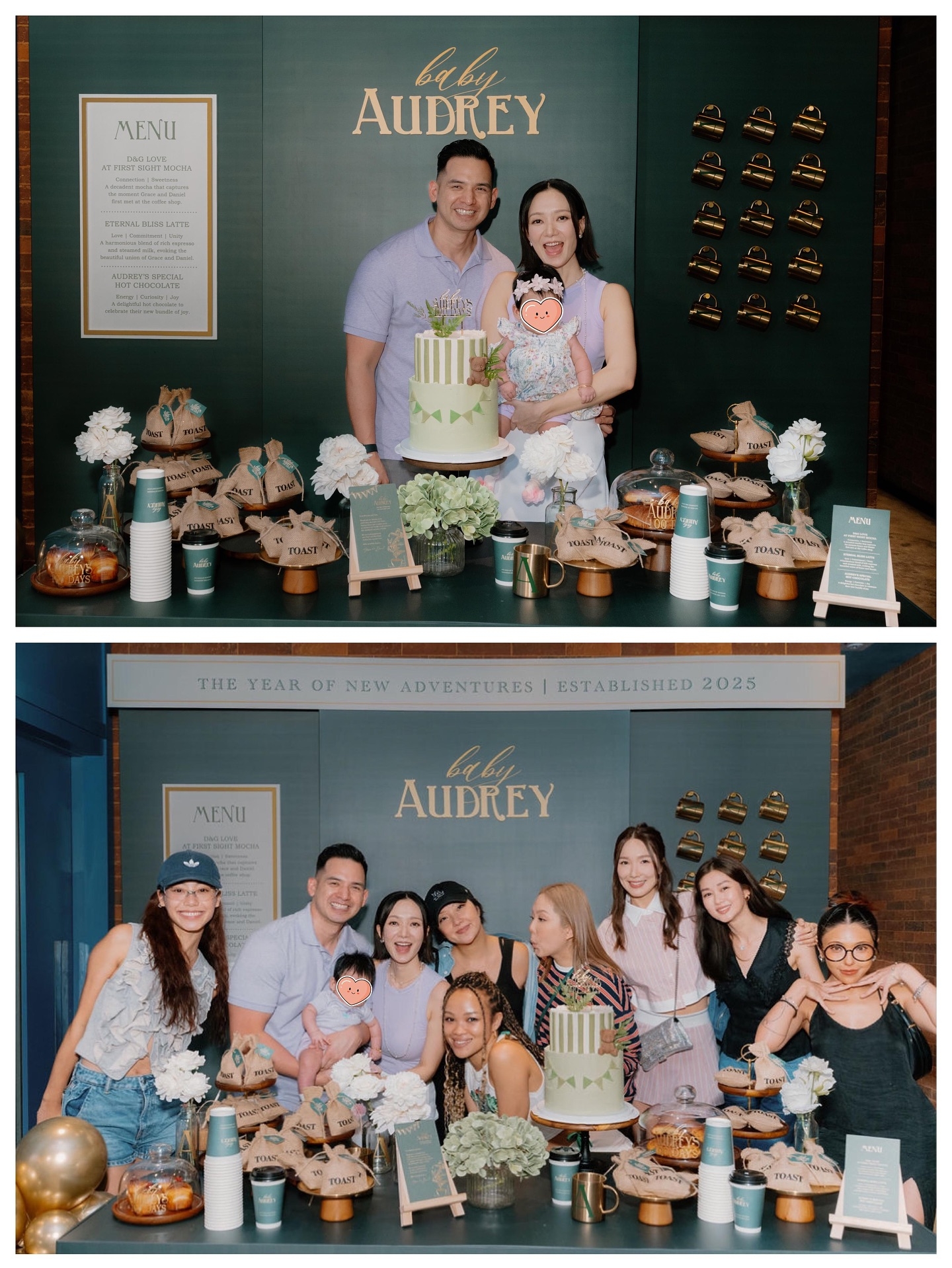 而王君馨解釋阿女百日宴以甜蜜咖啡店為主題,係因為佢同老公20年前喺紐約一間咖啡店墜入愛河,如今佢哋迎來珍貴嘅女兒,佢哋都想揀呢個主題,同時準備咗美味嘅派對及特飲,王君馨話回頭當日照片,佢腦海同嘴裡留下甜蜜香氣,佢迫不及待等Audrey長大後一齊再睇啲照片。