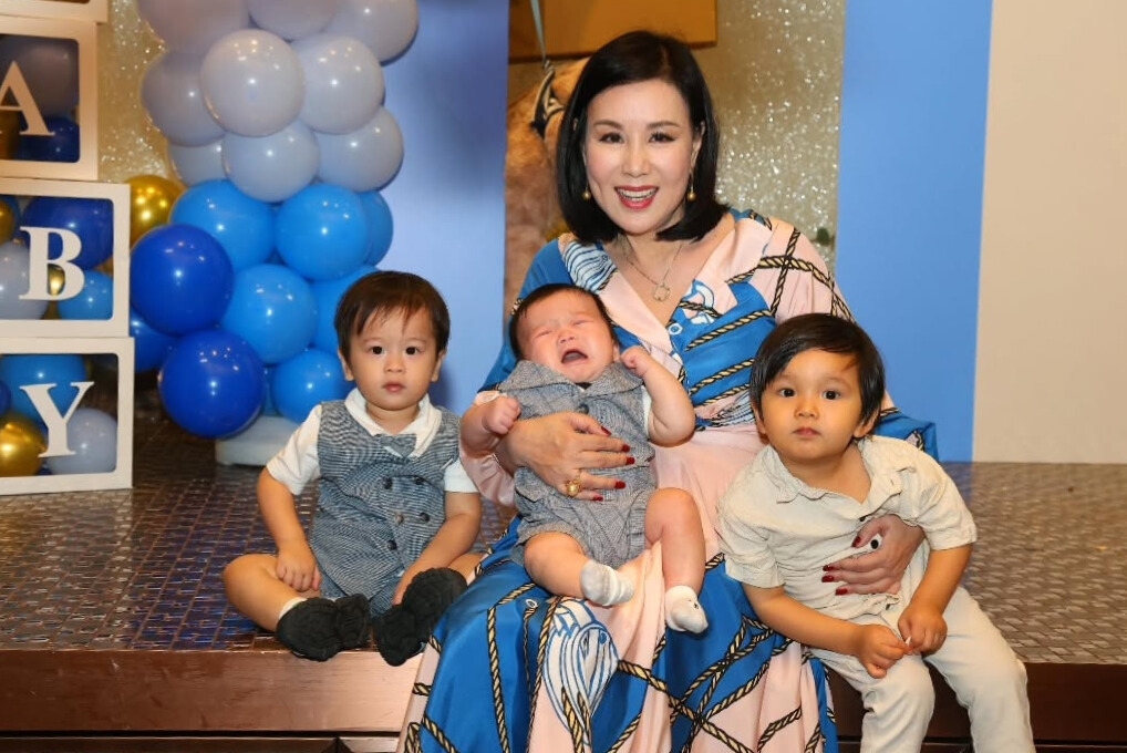 65歲文雪兒近年減產享受家庭樂,兩位愛女張筠(Christy)與袁萃(Jennifer)先後結婚生B,文雪兒湊孫為樂,前日喺社交平台開心宣布家有喜事又添孫,仲叫大家估吓今次係男孫定女孫,不過就有畀提示係「粉紅色」,今日佢就再貼出三個孫溫馨合照,話「以後妹妹有兩個哥哥錫啦」!