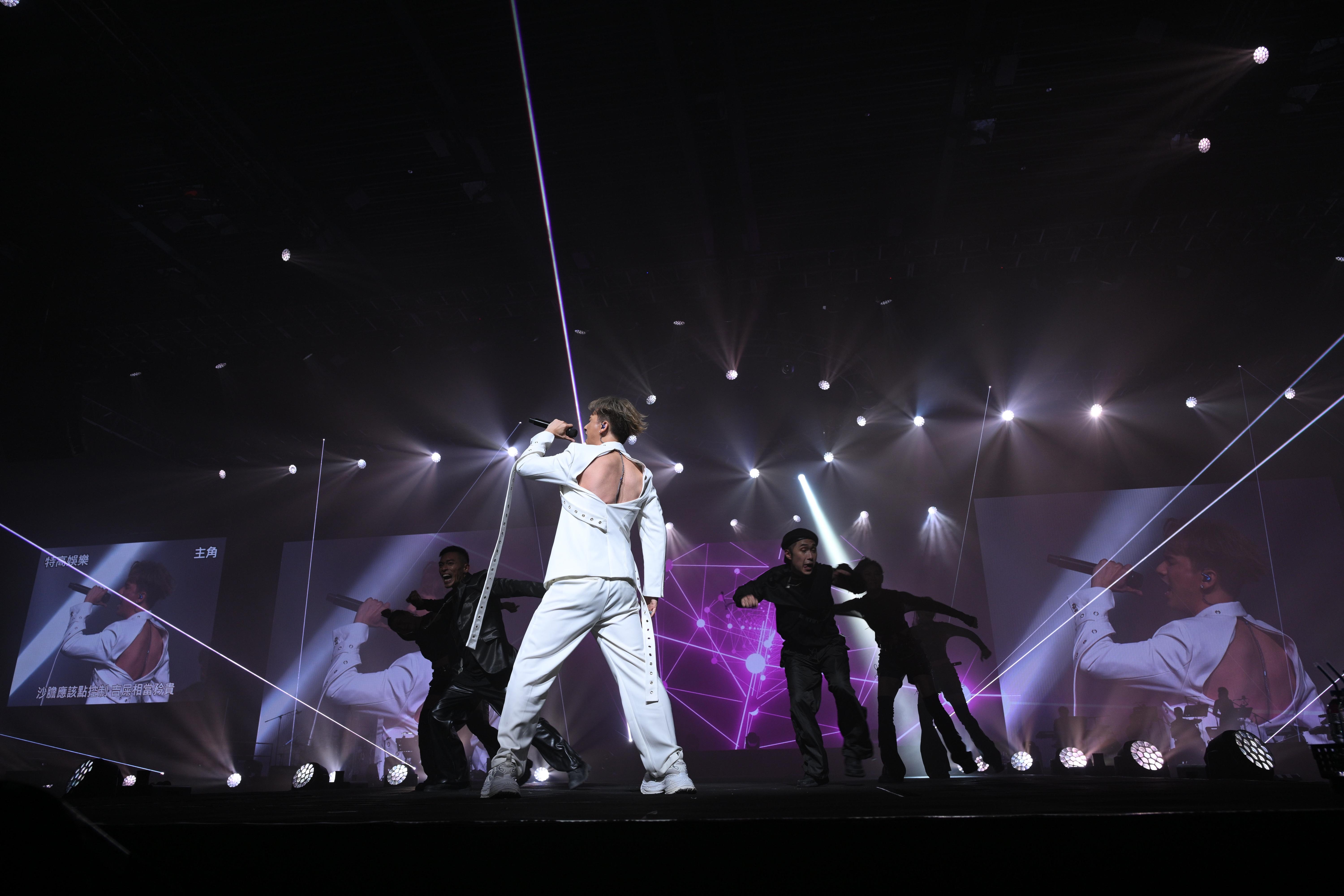 至於「木星」黃劍文則大騷舞技,跳唱《Baby One More Time》及《夢伴》。不過最令觀眾驚喜嘅,係劍文同吉吉合唱最近熱播嘅《用背脊唱情歌》,吉吉身上嘅白色外套,除咗正面可以若隱若現咁見到腹肌外,當吉吉擰轉背時,仲可以清晰見到背肌,對此吉吉笑謂:「為了今次演唱會我努力練胸肌、腹肌,點知設計話我知今次露背脊,所以下次都係要練全套。」![]()