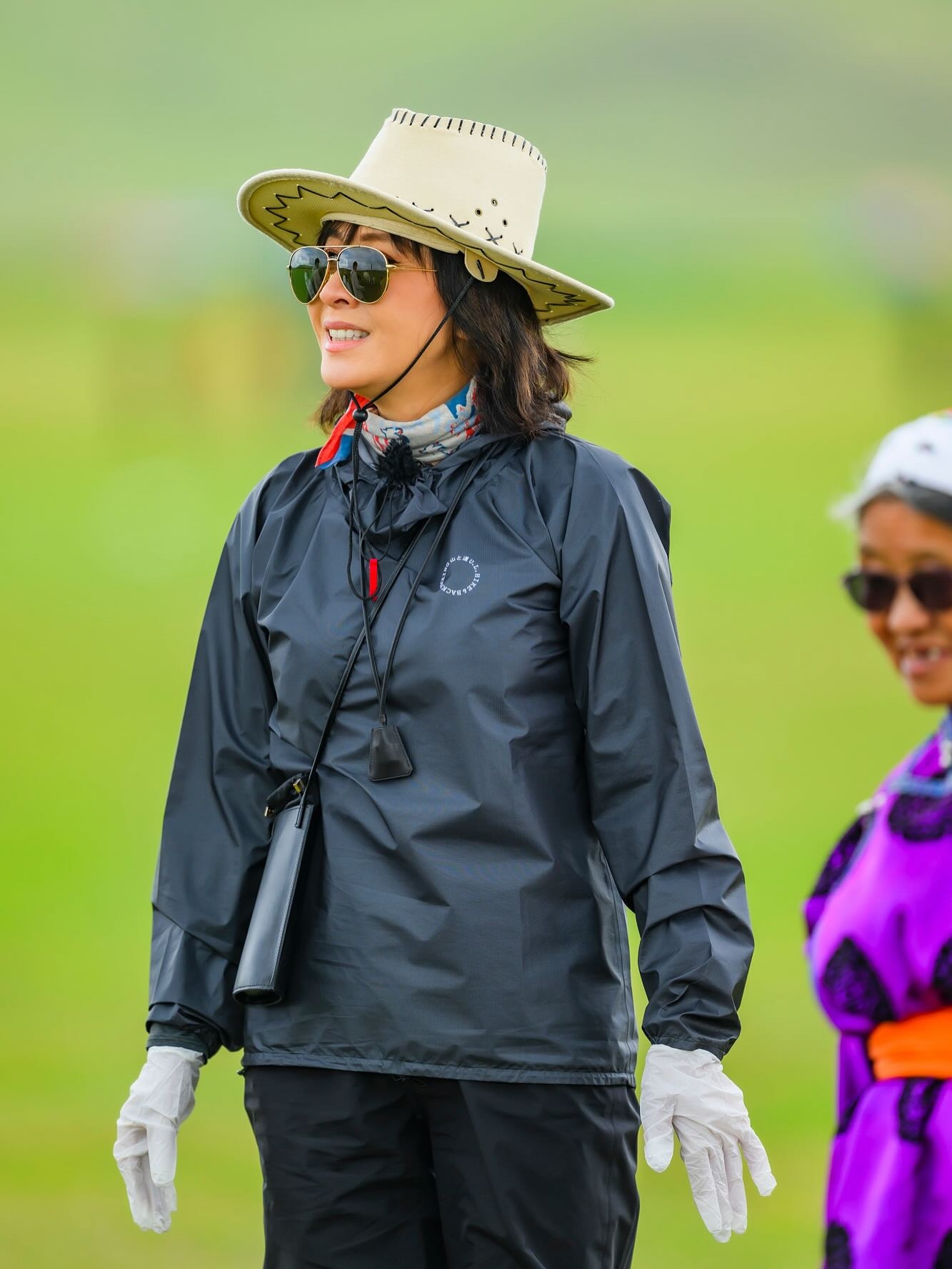 嘉玲跟隨當地人,親身體驗遊牧生活,除咗喺大草原騎馬,又同小女孩一齊餵羊仔飲奶,仲落手落腳學揸牛奶。每張相都見到嘉玲笑容燦爛,非常享受整個環境,兼且同當地人打成一遍,仲親自孭住巨大背包,毫無架子。![]()