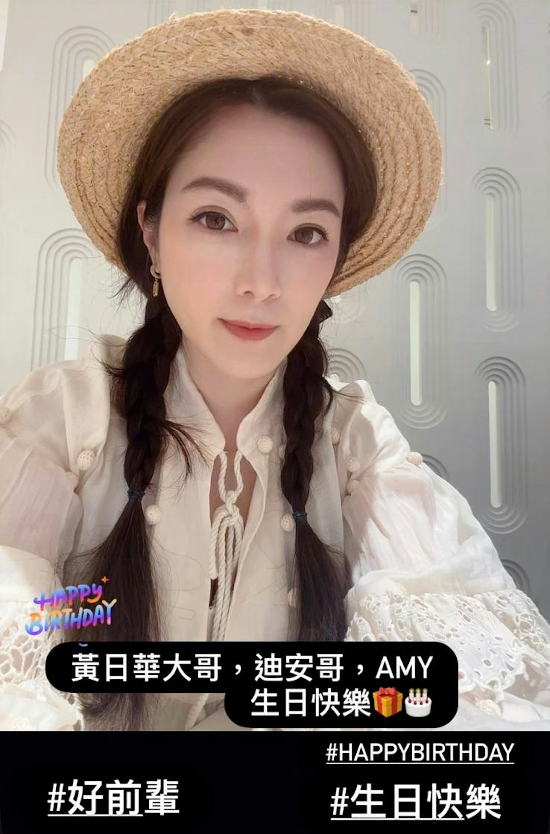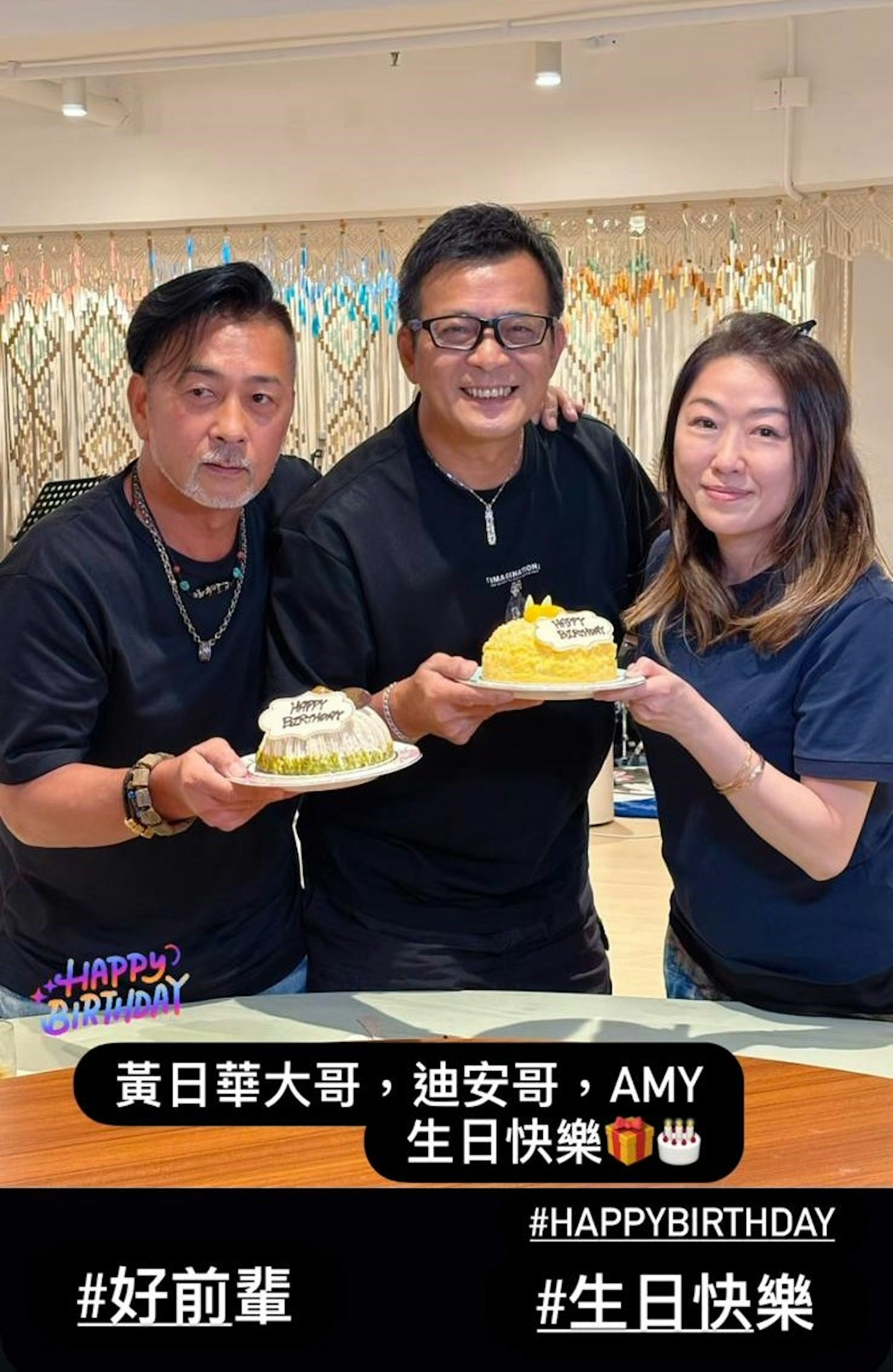 雖然愛情失意,但苟姑娘生活多姿多采,不時同朋友聚會,完全不愁寂寞。日前苟姑娘就喺社交平台分享為黃日華、林迪安慶祝生日嘅近照,更寫上:「黃日華大哥,迪安哥,AMY生日快樂」。而佢同華哥仲頭貼頭合照,可見相當老友。