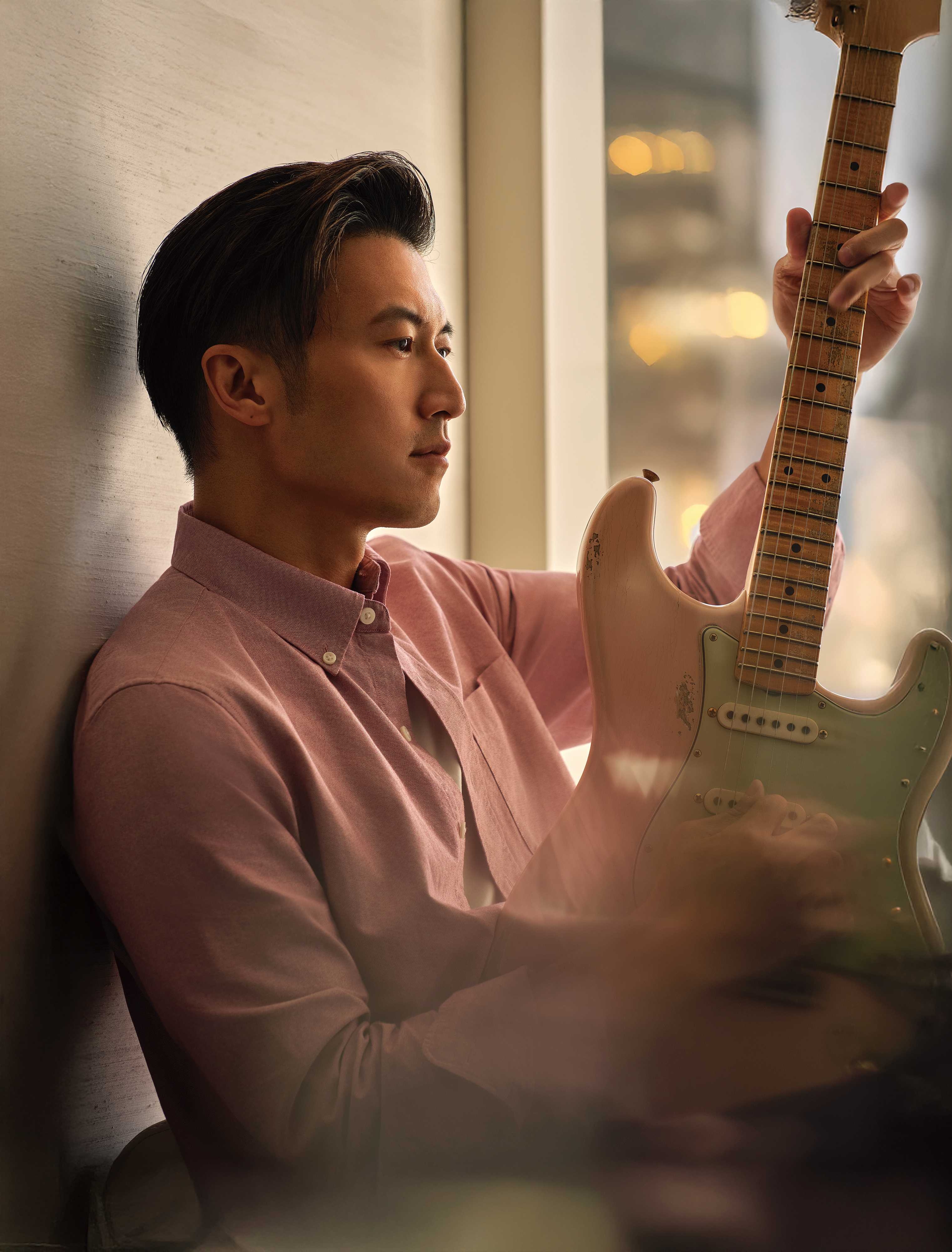 謝霆鋒近日為時裝品牌擔任香港區代言人,拍攝新一輯秋冬系列廣告,以一身型格登場展示現代男士嘅生活哲學,霆鋒著型格恤衫、拎住結他擺Pose,突顯其音樂才華洋溢。