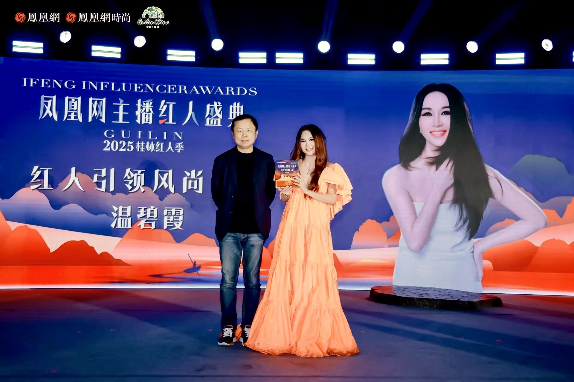 溫碧霞Irene 繼上月獲《第三屆柬埔寨亞洲電影節》頒發「終身成就獎」後,早前再獲桂林市文化廣電和旅遊局主辦嘅《鳳凰網主播紅人盛典2025桂林紅人季》,頒發「紅人引領風尚人物」獎項。![]()