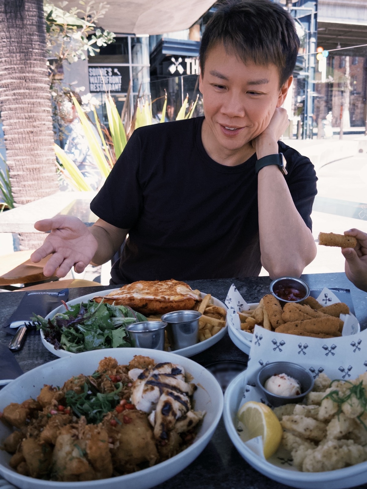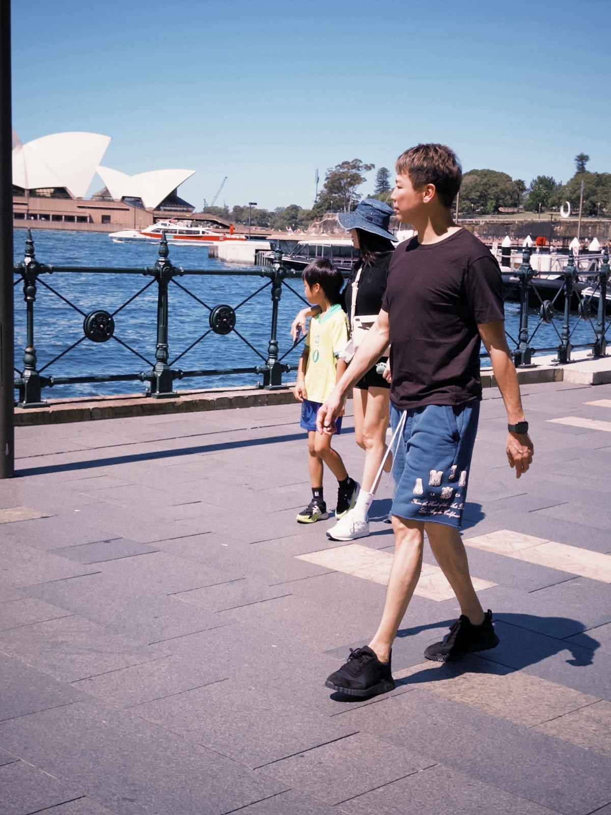David嘅囝囝Bon Bon今年6歲,之前都試過陪爸爸巡迴開騷,今次David第一次到悉尼開騷,一家三口同行,齊齊打扮休閒喺街上漫步,享受風和日麗嘅悉尼風光,相中見到著名景點悉尼歌劇院,父子仲隨性席地而坐,一家人齊齊大嘆美食,非常開心。![]()