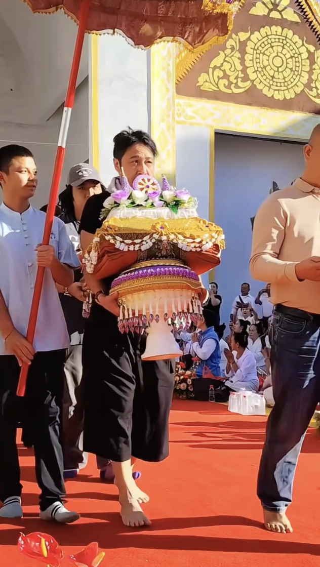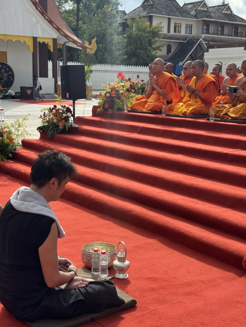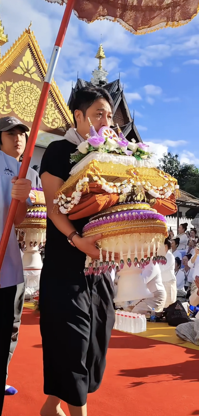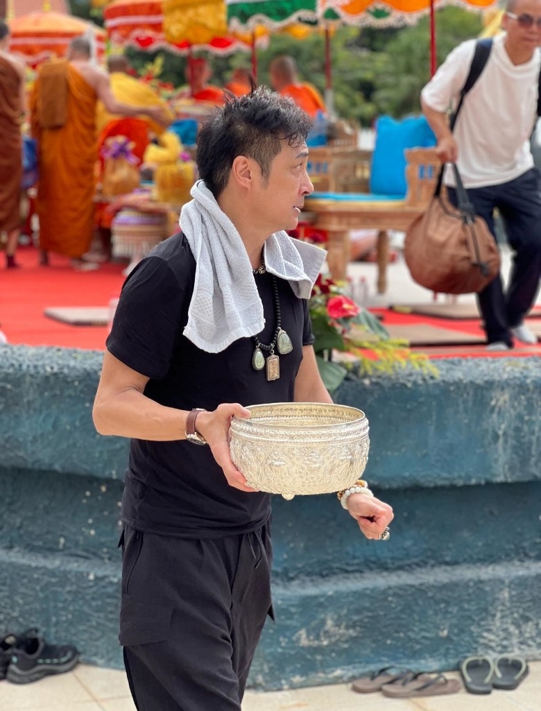 吳鎮宇深信佛教多年,近日佢被野生捕獲喺雲南西雙版納嘅景洪市大金塔寺出現,參加傣族佛教供養儀式,17歲囝囝費曼亦有同行。