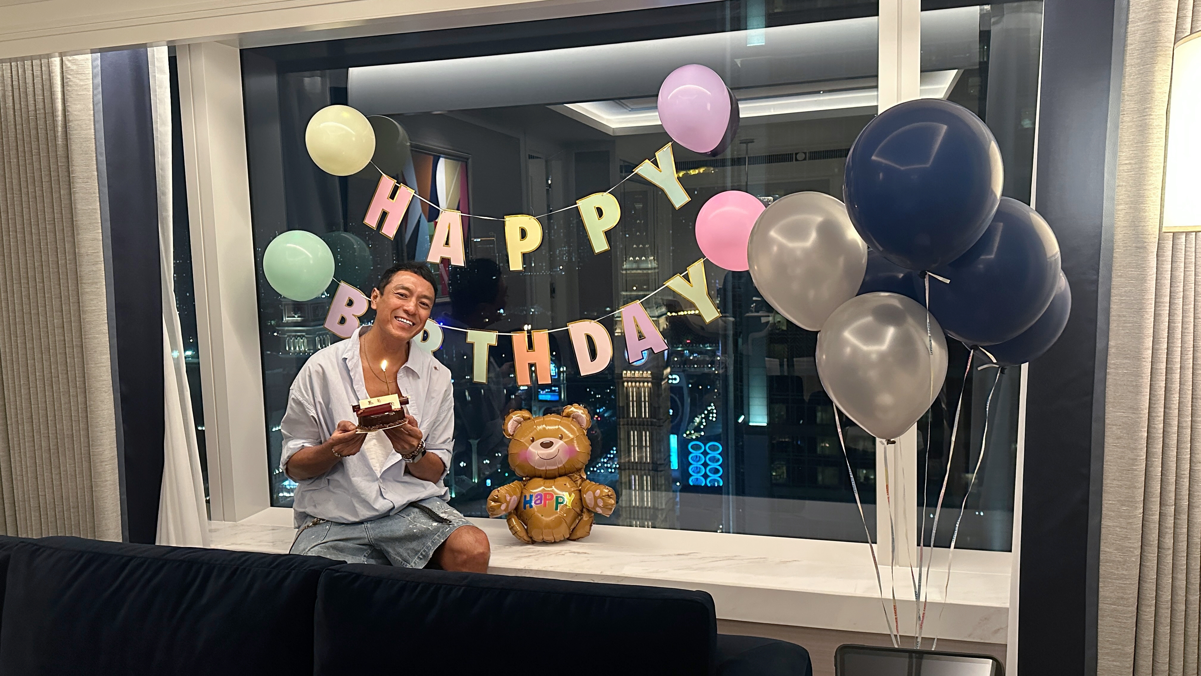 黑哥喺外埠工作中度過生日,酒店及劇組特意為佢製造驚喜送祝福,預早喺酒店房間作生日佈置、並準備禮物同蛋糕等,黑哥一行入房已暖在心頭,既驚喜又好開心,佢又指生日開工喺好意頭,多謝大家安排,呢幾日亦收到好多祝福。