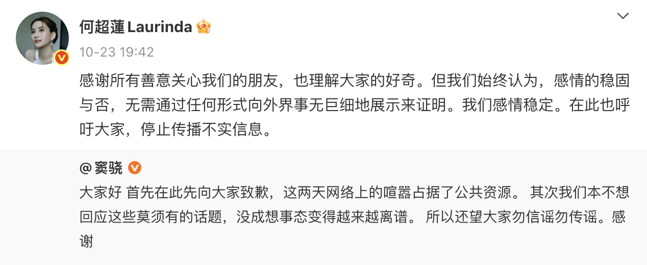 亦有網友指,於悉尼人員劇院附近遇上竇驍超蓮夫婦,兩人更親切打招呼微笑。早前因兩人久未合體,過往糖黐豆不時齊齊現身嘅情況亦大幅減少,網上逐慚傳出兩人感情生變,而竇驍同超蓮上月底亦不勝其煩,於社交平台發文回應澄清。