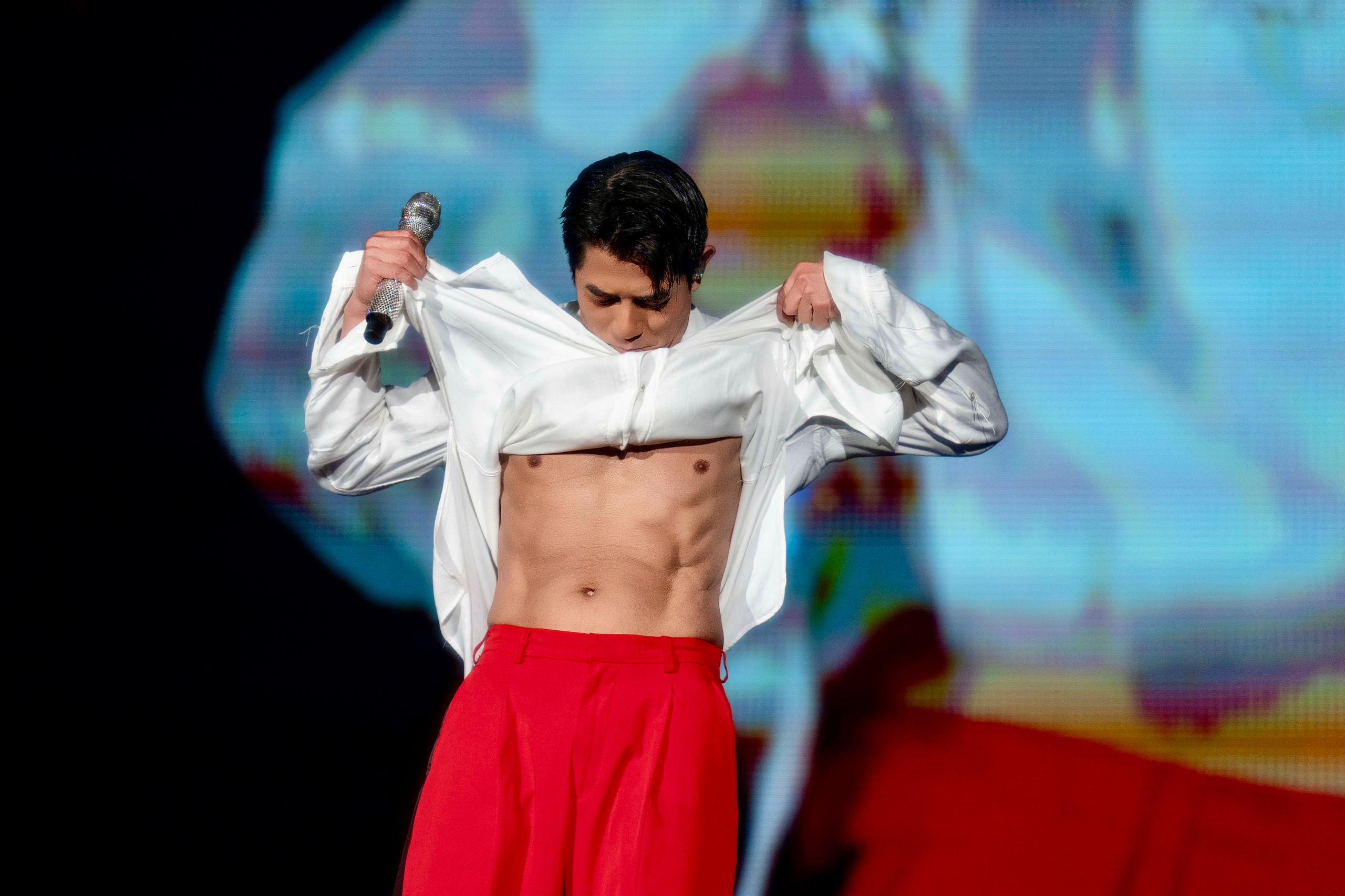 城城亦不時同觀眾幽默互動,提到維持體能嘅話題時,一邊展示結實身型邊笑說:「每天的舞台動作都像健身一樣,但我每天洗澡都看到,也不覺得有什麼特別啦!」更掀起上衣大騷健碩胸肌同腹肌線條。