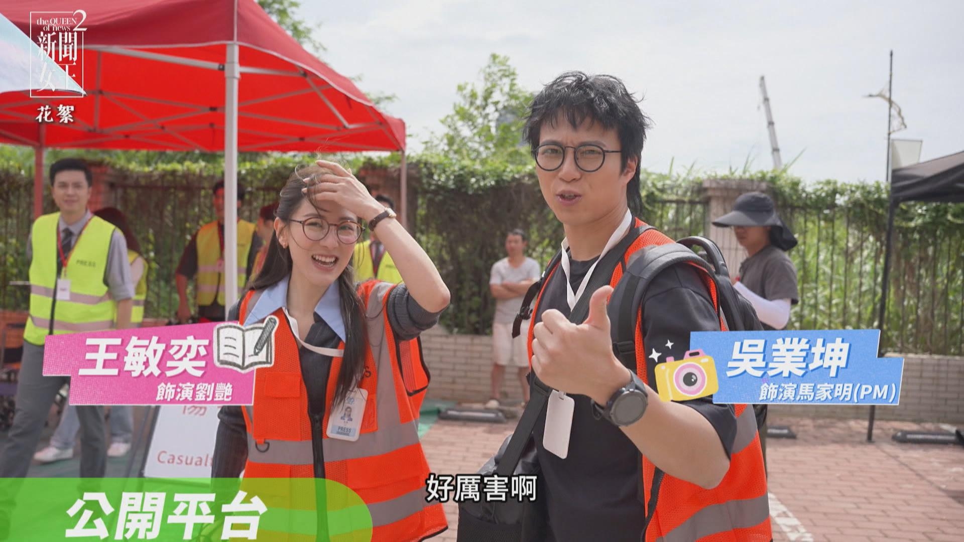 而劇中要深入險境採訪嘅 李施嬅 ,就話呢場戲比起上一輯《新聞女王》拍攝嘅大型翻巴士意外場口舒服得多,當時氣溫高達40度,施嬅雖然手拎咗小型電風扇降溫,但係佢都講笑話唔辛苦,因為呢日嘅氣溫冇30度呀。![]()