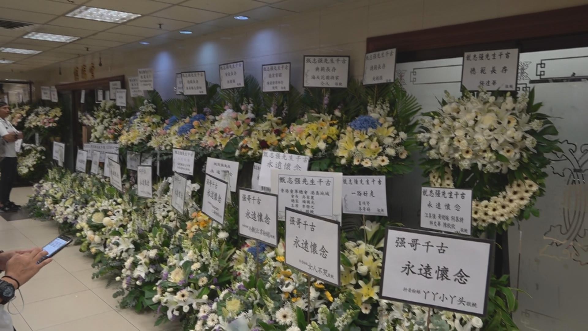 靈堂佈置簡潔,橫匾寫上「永遠懷念」四字,靈堂正中擺放咗太太方心媛送上嘅心形花牌,而兩旁同門外就擺滿唔少圈中朋友送上嘅花牌,好似陳展鵬同太太單文柔、姜皓文同太太、任達華、方平、鮑起靜、肥媽、區永權、苑瓊丹、黎瑞恩、楊玉梅、蘇志威劉少慧等等。而靈堂上亦播放甄志強昔日嘅生活相片,比一眾好友懷緬。![]()