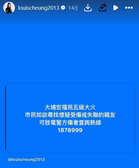 大埔宏福苑五級大火,全港市民都徹夜難眠,心繫仍然受困以及失去家園嘅居民,唔少市民都自發出心出力提供協助。而娛樂圈藝人亦發揮佢哋嘅社交平台網絡影響力,提供有用資訊。