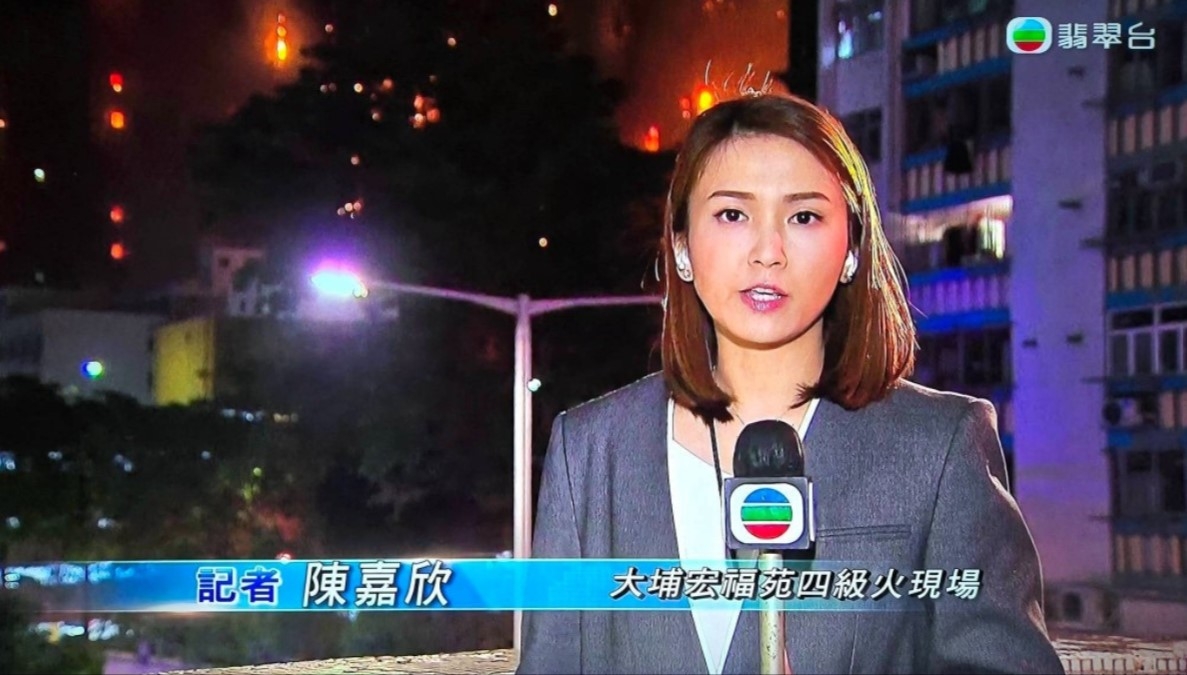 大埔宏福苑五級災難火警,受災範圍之廣及死傷人數之多,成為全球新聞採訪焦點。TVB新聞部收到火警消息後,瞬即調派人手全方位現場直擊。主播 陳嘉欣 自下午起已第一時間於宏福苑外為觀眾直擊報道現場情況,佢既清晰表達又敏捷嘅反應,加上鎮定同專業嘅態度語氣,獲觀眾同網民表揚。