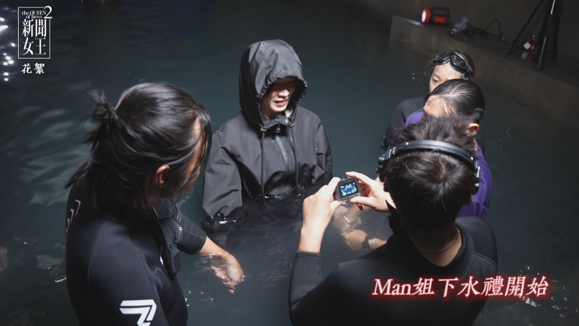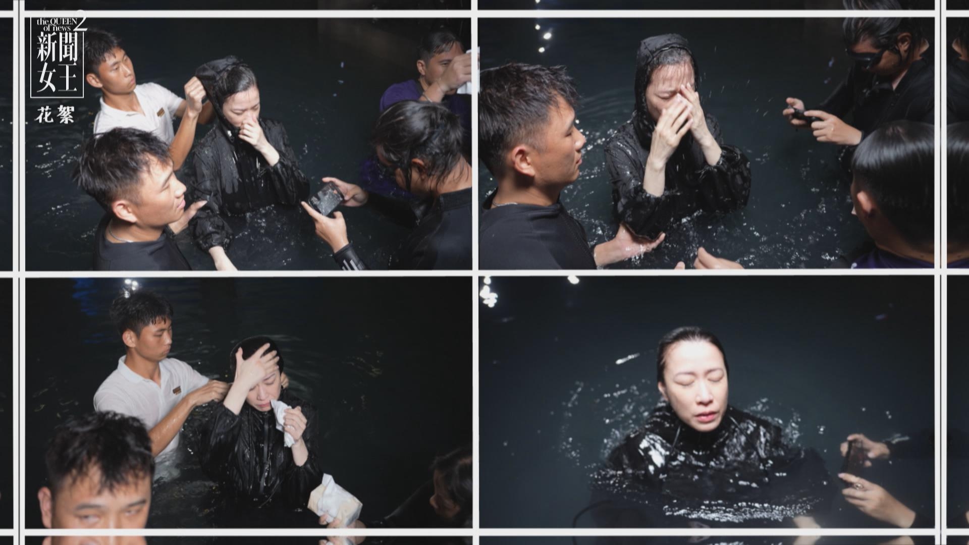 阿佘同馬明埋位拍攝時,兩人即收起笑容,投入情緒專業演出。即使被水潑,阿佘整個人浸入水中十多次亦照單全收,只求拍攝效果逼真,完成引水道拍攝後,阿佘就為成功拍得好畫面展現燦爛滿意嘅笑容。