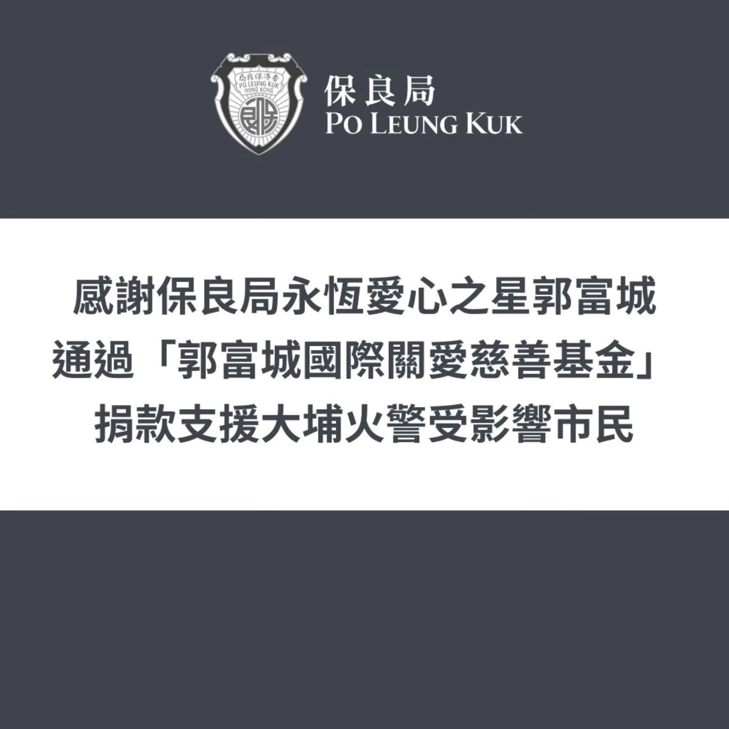 宏福苑五級火災踏入第七日,各界人士繼續為災民出心出力,演藝界善心不斷,郭富城透過「郭富城國際關愛慈善基金」捐出港幣一百萬予「保良局扶弱基金 - 支援宏福苑火災居民專項戶口」,任賢齊、周興哲同樣捐出港幣五十萬,而方力申聯同香港游泳學校、慈善機構一瀧游泳合共捐出港幣五十萬,蘇永康夫婦一家捐出港幣三十萬。