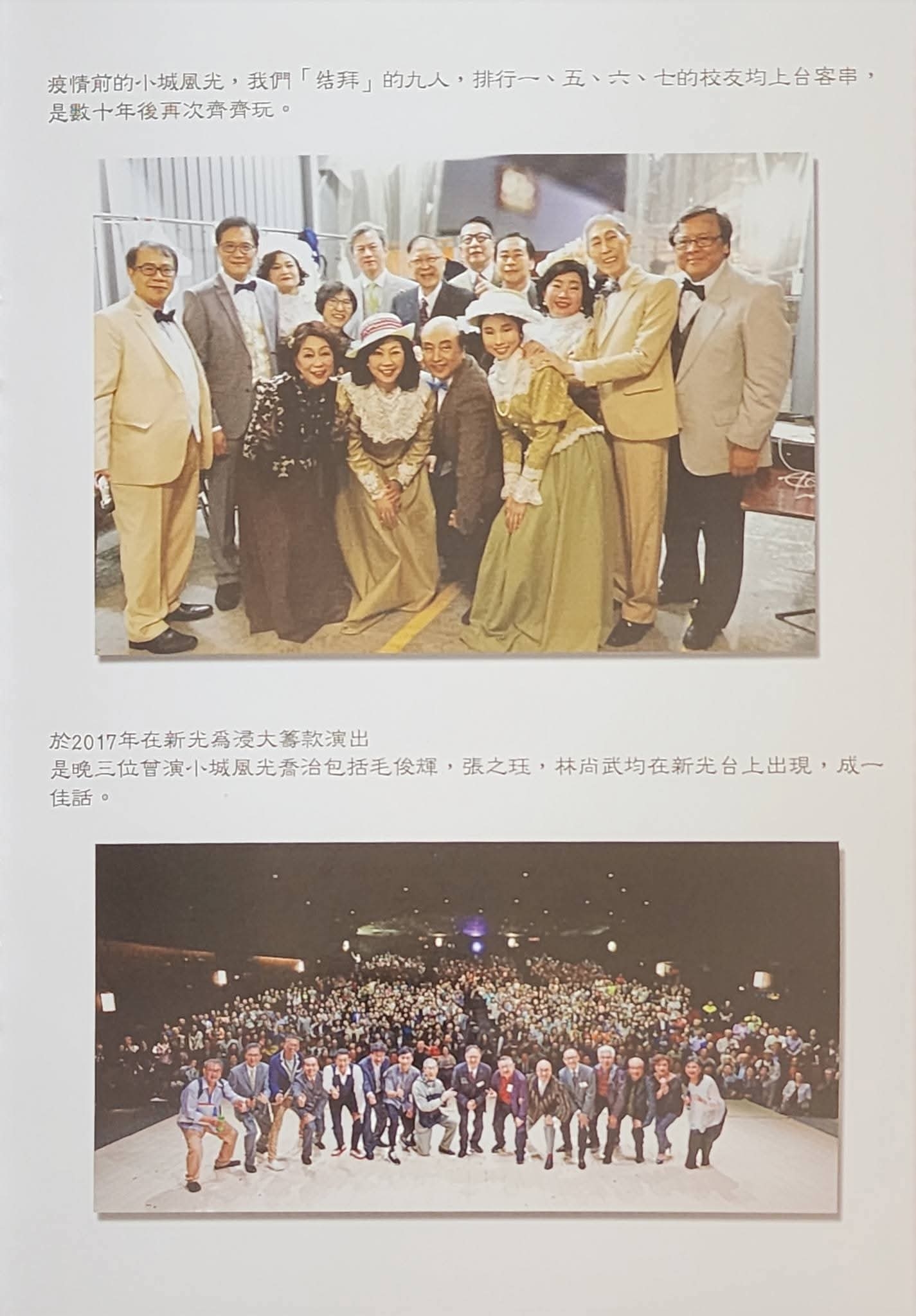 回憶1974年在浸大上鍾景輝King Sir堂,我和老六羅冠蘭、老七胡啟榮,老八吳子山及至今失聯的老二劉煜光均不計較學分而每週六都走在一起旁聽的情誼,其間備戰小城風光,又為大學演戲籌款,畢業後雖各自在舞台及影視圈打拼,仍情比金堅,組織劇社聯誼,偶有得獎,既開心又感概!