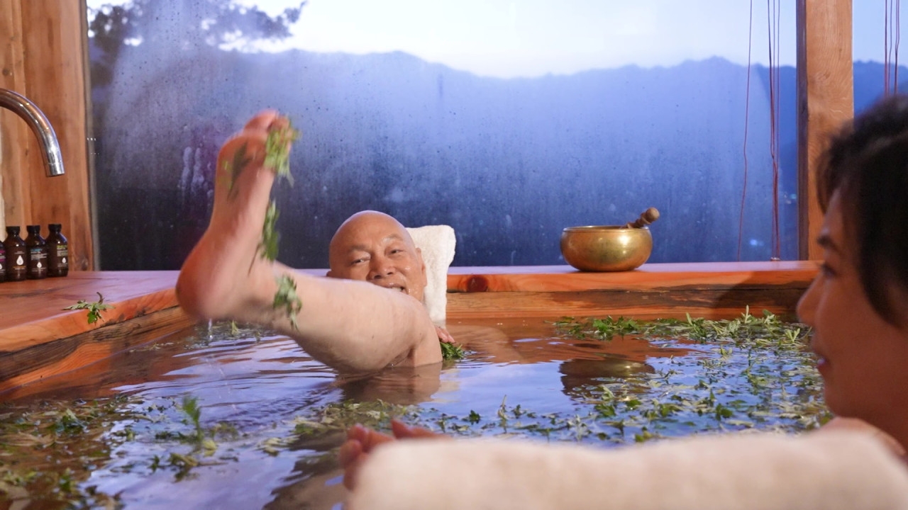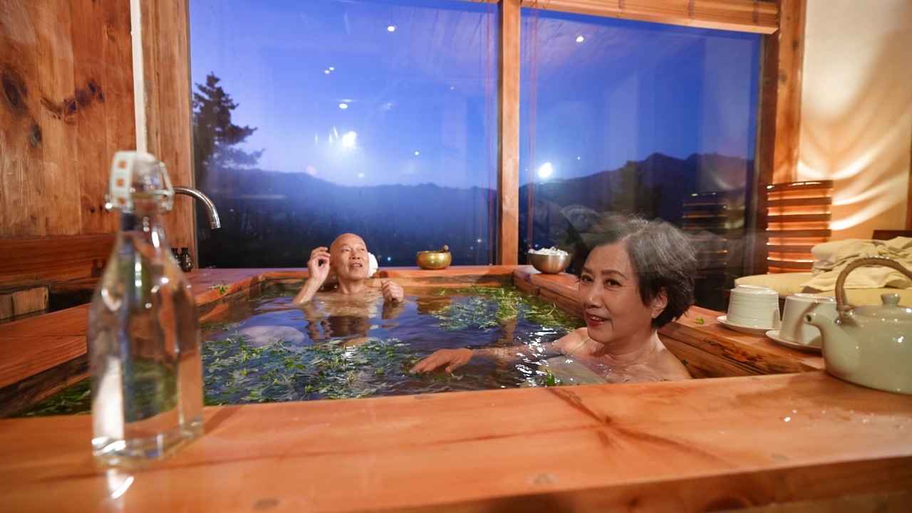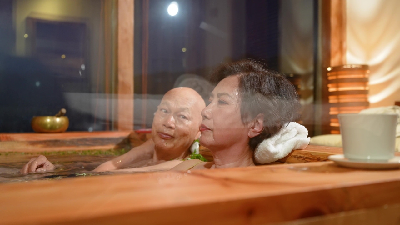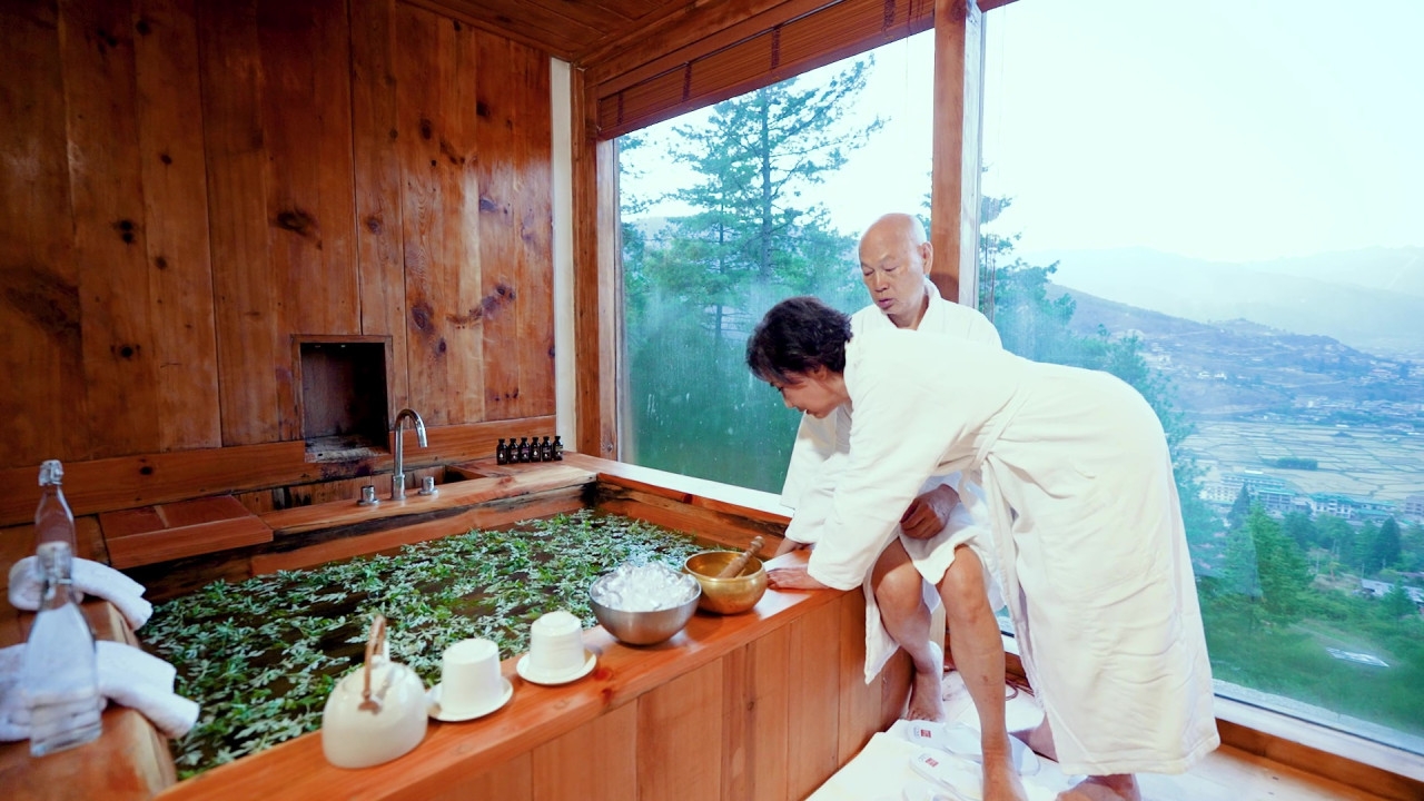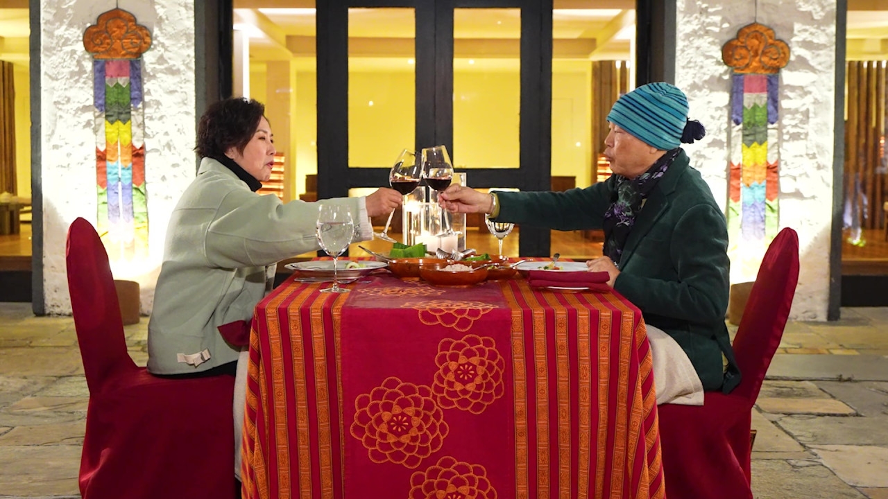 TVB台慶綜藝節目《帶阿姐看世界》第三站不丹行程,阿姐汪明荃與羅家英「花式放閃」,噚晚播出不丹篇最後一集,佢哋坐直昇機Tour升上4,000 米高空,輕鬆俯瞰藏傳佛教聖地虎穴寺,隨後前往當年梁朝偉與劉嘉玲婚禮嘅酒店,享受熱石浴「鴛鴦浸浴」,家英哥浸浴時不忘自豪晒白滑小腿。