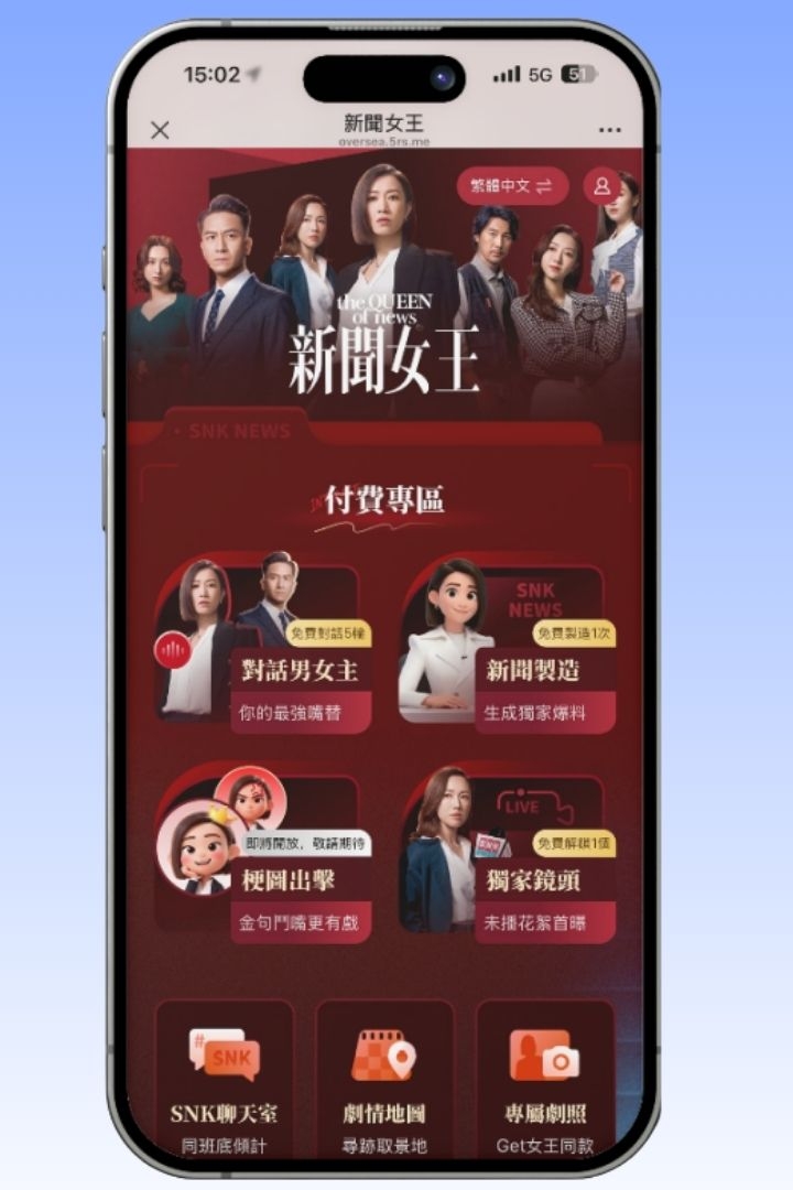 由DCG提供AI同互動系統支持下,用戶可同劇中代表角色Man姐文慧心、或者佐治梁景仁展開即時對話。系統會依角色設定同語氣生成回應,重現劇中魅力,打造極具戲劇延續感嘅沉浸式體驗。而同時SNK聊天室就支援同多名角色(如張家妍、許詩晴等)連續對話,進一步強化同粉絲互動與內容二次傳播。![]()