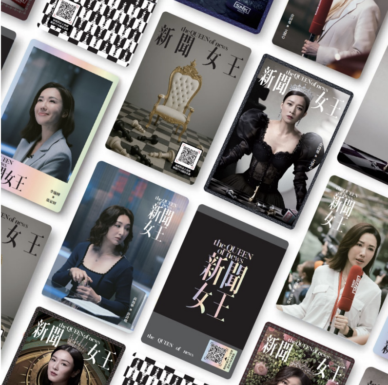 《新聞女王》AI互動實體卡牌,靈感源自劇中經典角色同場景,每張卡牌都印有專屬二維碼,用戶掃描後就會進入互動平台,付費解鎖9項獨家數碼內容。除咗可以同角色互動之外,產品亦包含獨家幕後花絮、劇集取景地圖同新聞行業知識分享等多元內容,令劇迷收藏之外,更深入探索劇集背後嘅創作世界。
