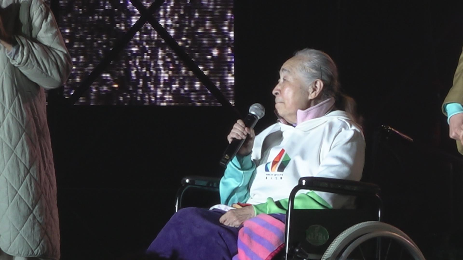 講到全晚最感動嘅一環,就係小金子、陳敏兒以及黃愷欣,齊齊隔空向已返天家嘅另一半深情對話,場面令人動容。年屆96歲嘅小金子,坐住輪輢出場,佢話:「喬宏,26年沒能見到你了,我知道你在天上很好,聖誕對我跟你來說,還有更深一層意義,因為我跟你,咱們是在1957年的聖誕夜訂婚,68年啦,你知道嗎?我今年96歲了」然後全場佈以掌聲。![]()