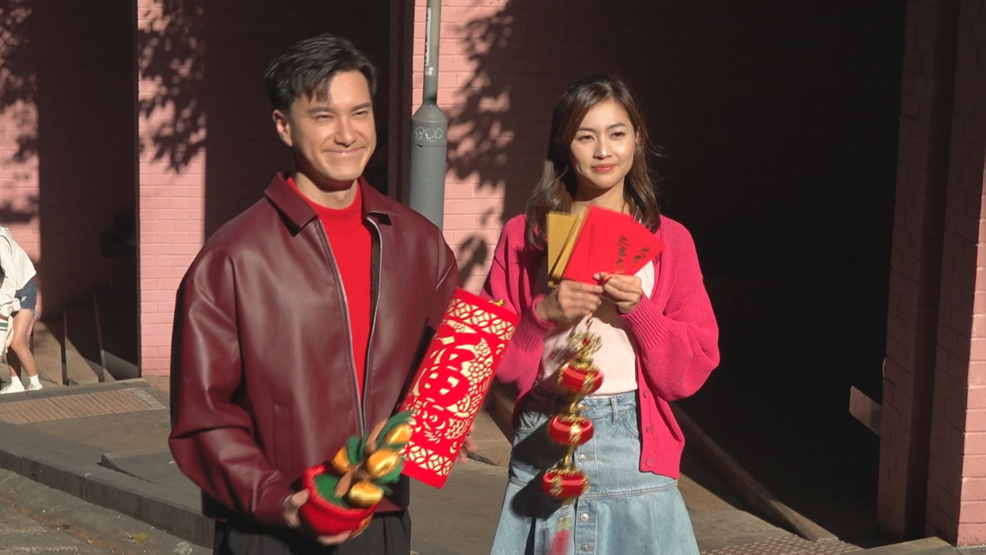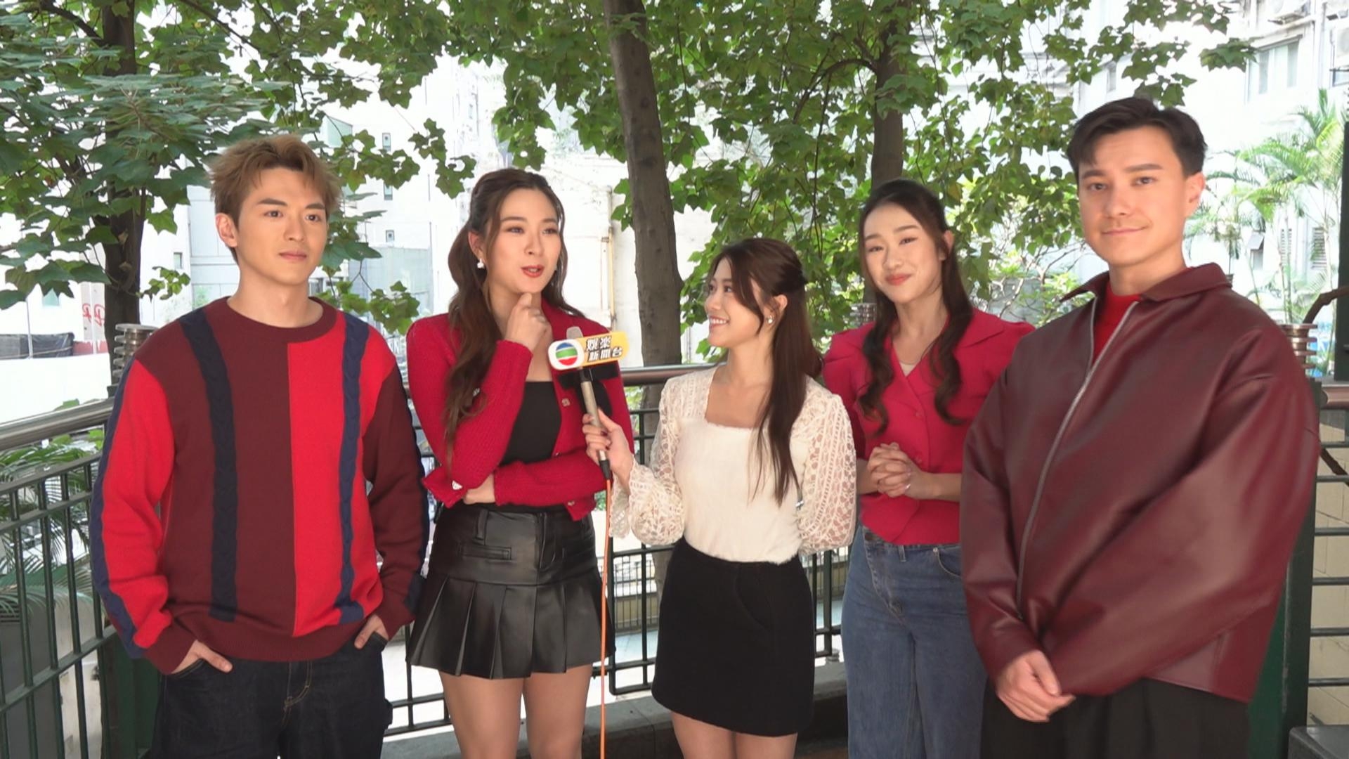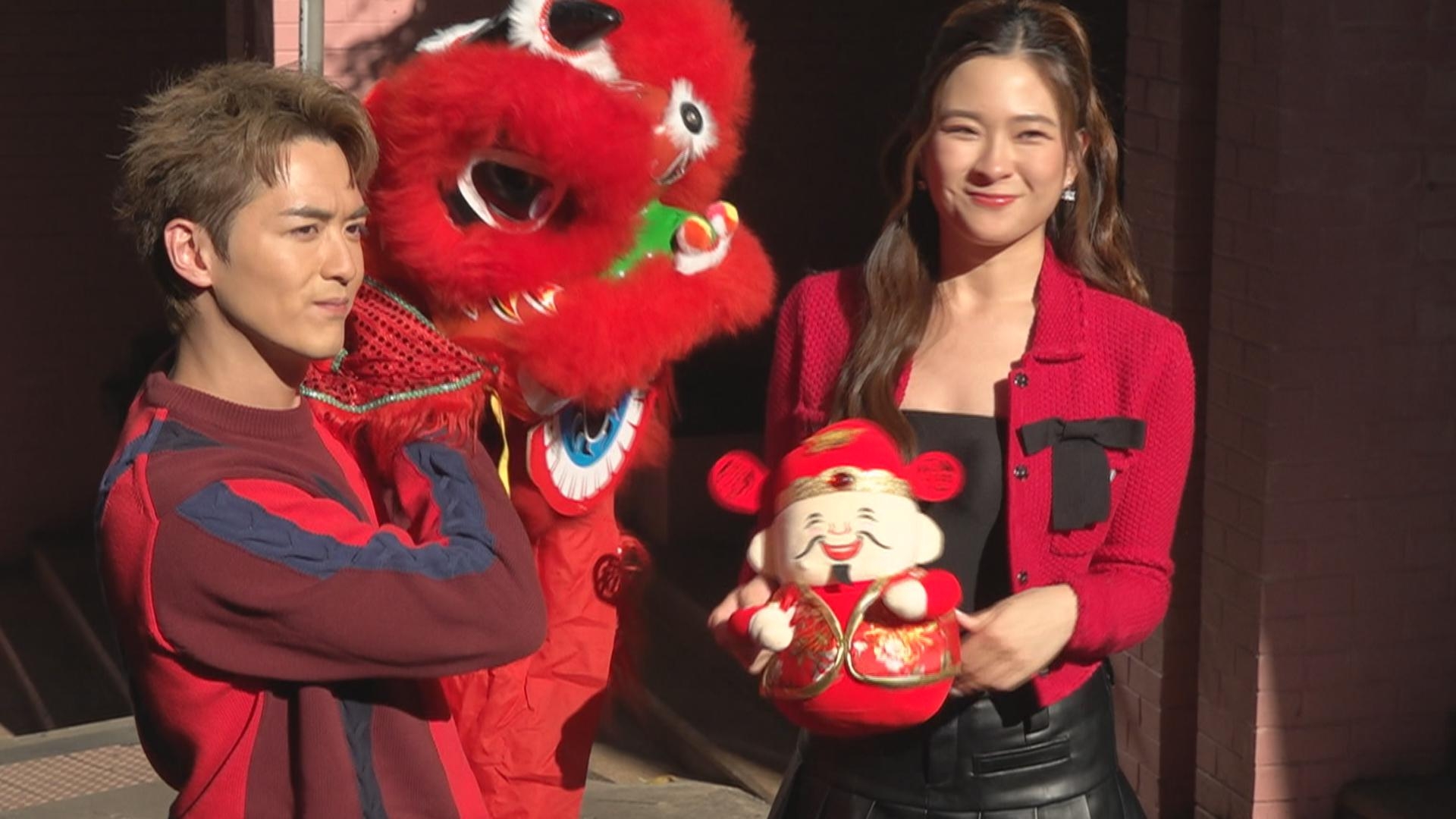 朱敏瀚 、郭柏姸、阮浩棕、陳懿德、何廣沛、曾文心、廖家爵 同 林凱恩 呢日一身紅噹噹打扮現身街頭,為TVB新一年嘅廣告套裝拍攝宣傳片,佢哋仲攞晒應景道具喺街上行,十足八個活動利是封一樣。