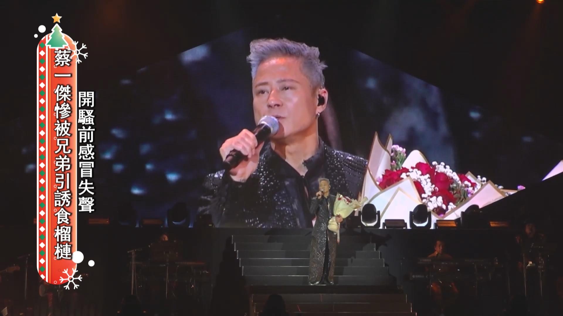 其實演出前,傑仔因為患上感冒病咗一個星期幾乎失聲,所以演出前,傑仔都唔敢講嘢,亦都努力戒口,就連佢最愛嘅榴槤都唔敢掂呀,相反佢兩位兄弟就不停引誘佢,真係少啲定力都唔得呀,好彩演出時,傑仔仍然保持水準,佢話歌迷熱情嘅支持,就係佢最好嘅良藥呀。![]()
