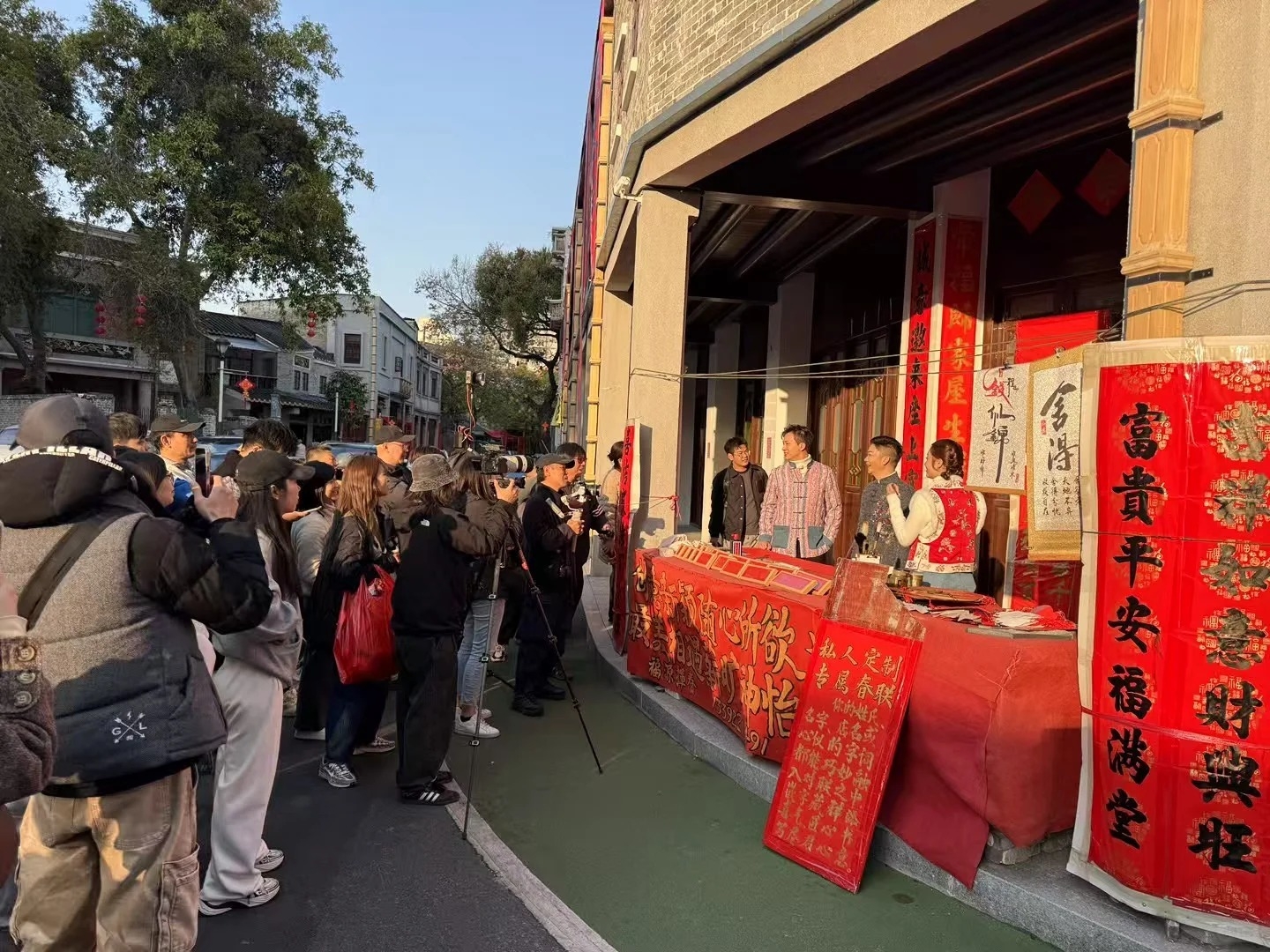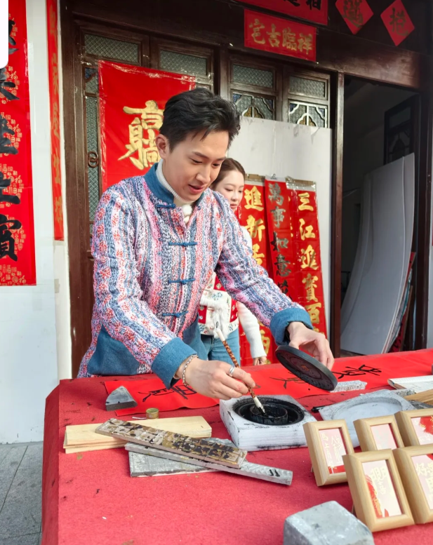 近日先後有網民喺佛山捕獲三人拍攝時嘅情景,其中一站GM同Sophie就去到著名文藝地標嶺南天地取景,兩人一展書法魅力,親手寫揮春,事後有網友獲得兩人嘅練習草稿拎返家留念,笑指算係得到兩人親筆簽名,更大讚GM為人可愛搞笑,女友Sophie皮膚白滑。