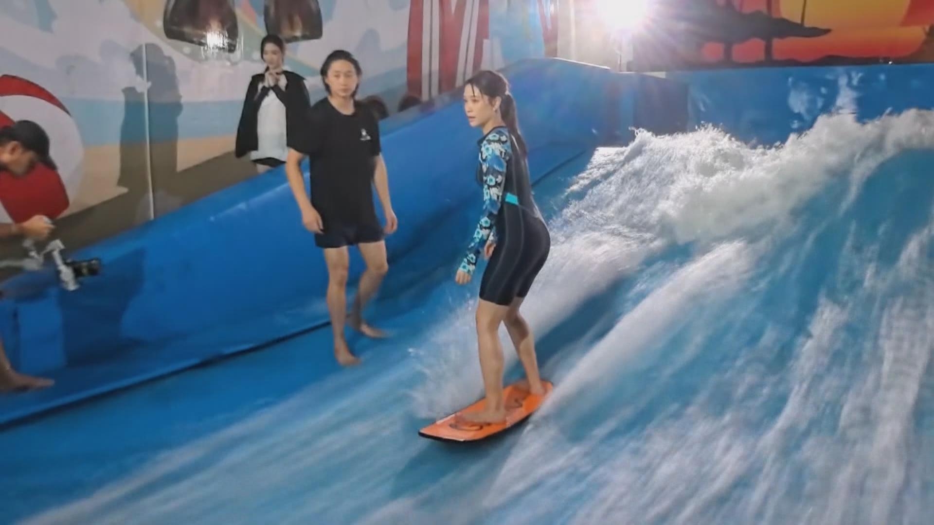 室內衝浪對一向好鍾意玩水上運動嘅Iris嚟講冇難度,教練連佢嘅手仔都未拖實,Iris已經放飛自我。