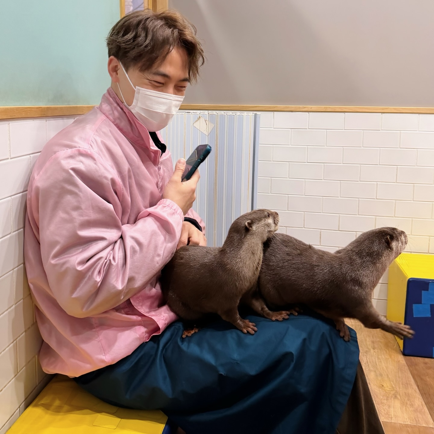 喜愛小動物嘅劍文,仲去到原宿一間水瀨專門店,原來劍文一年前曾經經過呢間專門店,但因為同行朋友有其他行程安排,所以過門不入,今次終於可以零距離咁同水瀨接觸,劍文唔止摸到抱到,水瀨仲爬到佢頭上,完全唔怕人,難怪劍文都話好似圓夢咁開心呀!