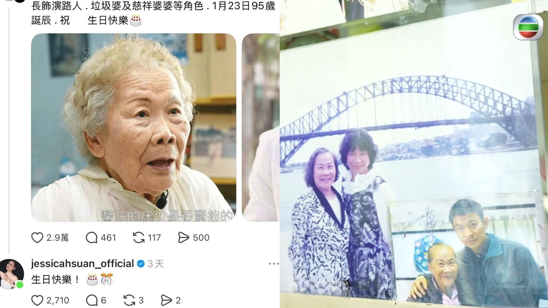唔少網民記得當年碧姬婆婆喺《My盛Lady》飾演富婆、《溏心風暴之家好月圓》飾演雲婆婆、《巾幗梟雄》飾演梁四等,碧姬婆婆每次出鏡令觀眾留下深刻印象,角色深入民心,日前適逢碧姬婆婆95歲生日,喺社交平台湧現大量祝賀留言,宣萱曾與碧姬婆婆喺多部TVB劇集《天地豪情》、《賭場風雲》等合作,宣萱一向對前輩敬重。
