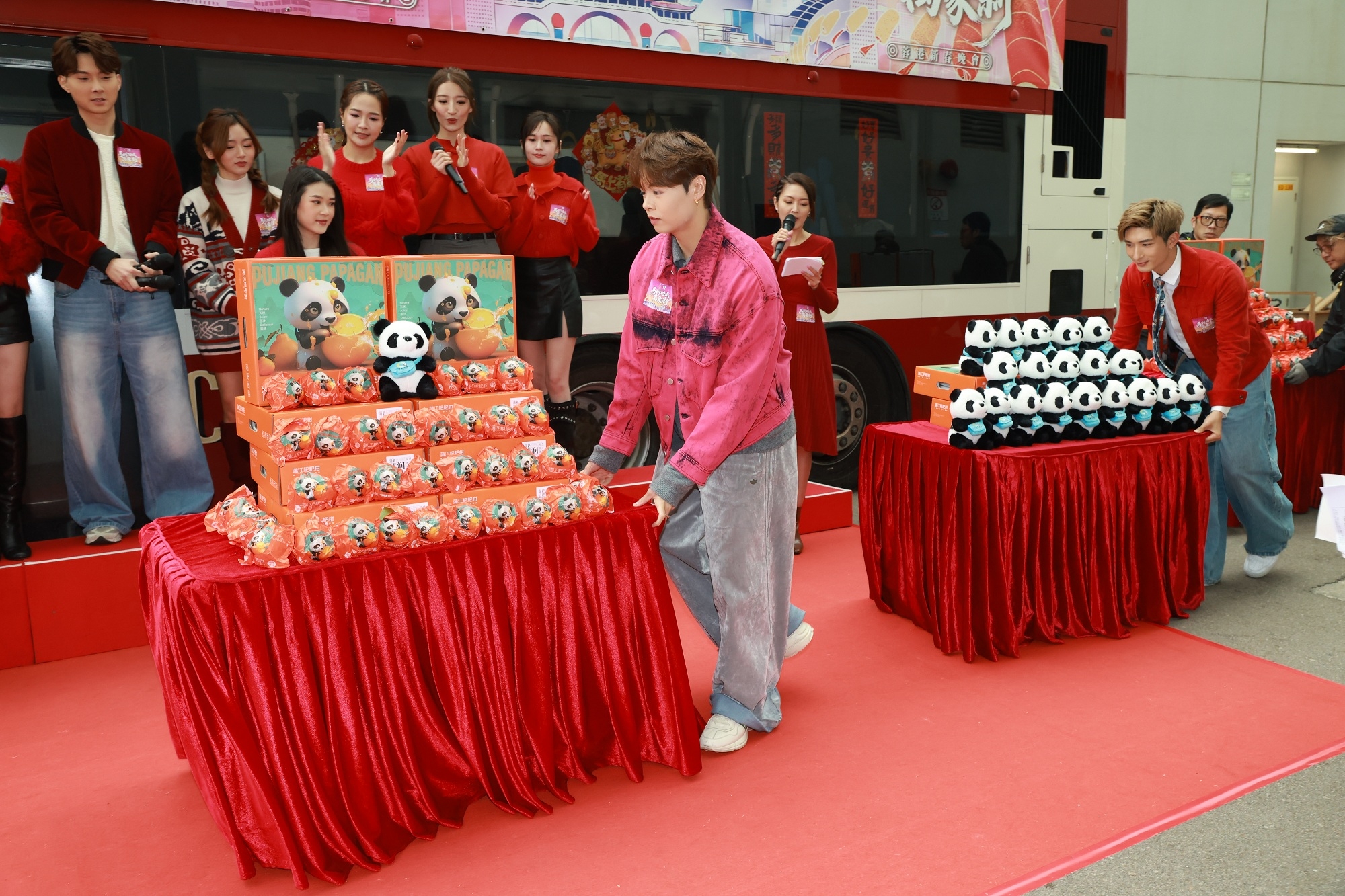 經過多月籌備同拍攝,節目最後一日拍攝新春花車遊外景,更特別於電視廣播城舉行煞科儀式,邀請一眾藝人分享拍攝感受,張馳豪、冼靖峰更暢談成都之旅,又親自將成都方面送出嘅禮物—人見人愛嘅「熊貓玩偶」同甜蜜多汁嘅水果「蒲江 耙耙柑」同大家一齊分享。![]()