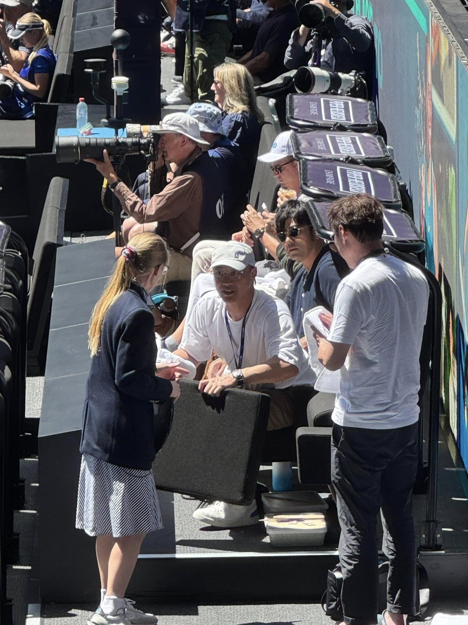 雖然周董未能晉級,不過就仍然有現身觀戰,仲同另一位同樣沉迷網球多年嘅樂壇老友「香港代表」 陳奕迅 被球迷發現於場邊,觀賞被譽為新一代球王艾卡華斯嘅比賽,同場仲見到周董愛妻 昆凌 ,不過就未見Eason太座 徐濠縈 同行喇。![]()