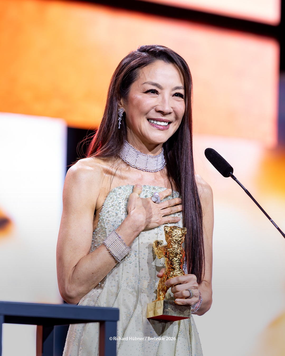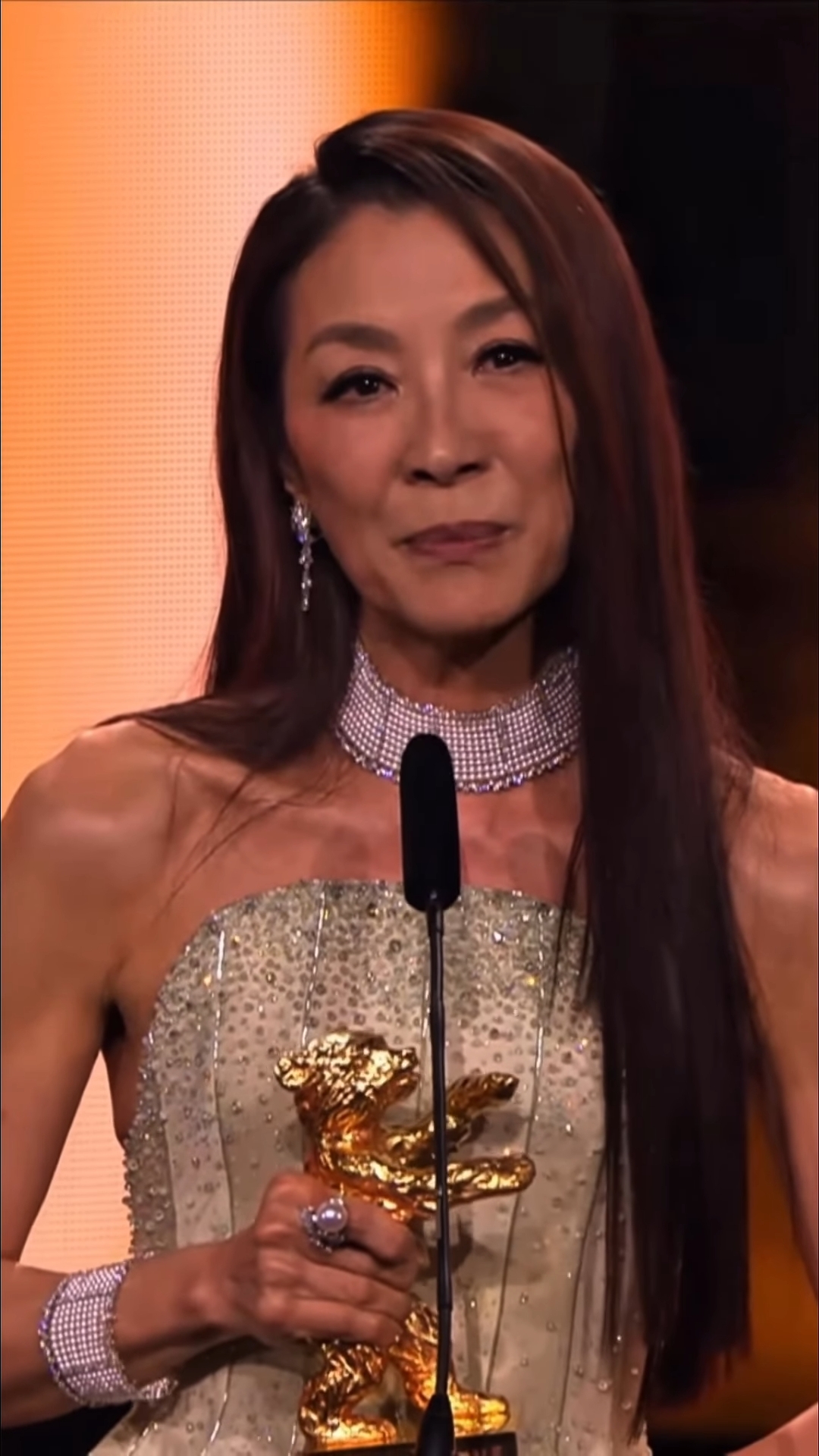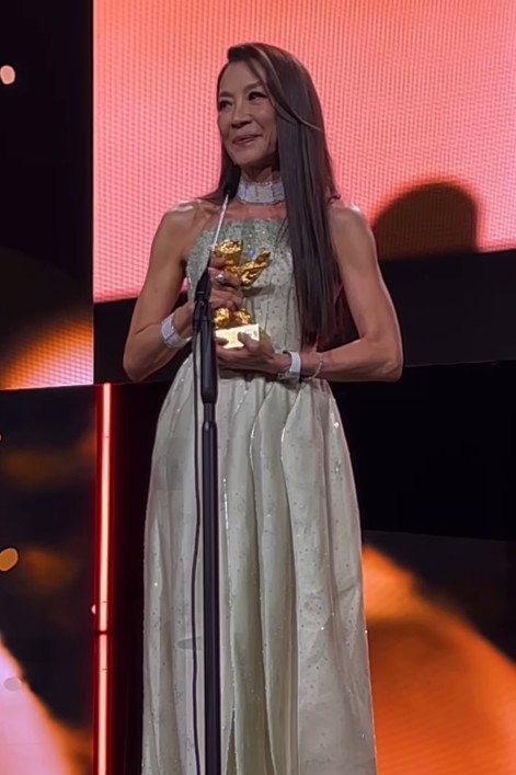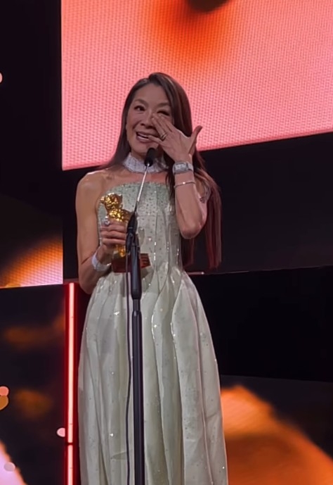 之後佢回憶自己嘅演藝路,坦言電影帶俾自己嘅,遠遠超過自己當初所想像,提及已故父親對自己嘅支持,Michelle哽咽表示,「雖然父親已經不在人世,無法親眼見證這一刻,但我將他銘記於心,如果他今晚能看到我手捧金熊獎,我知道他一定會微笑。」