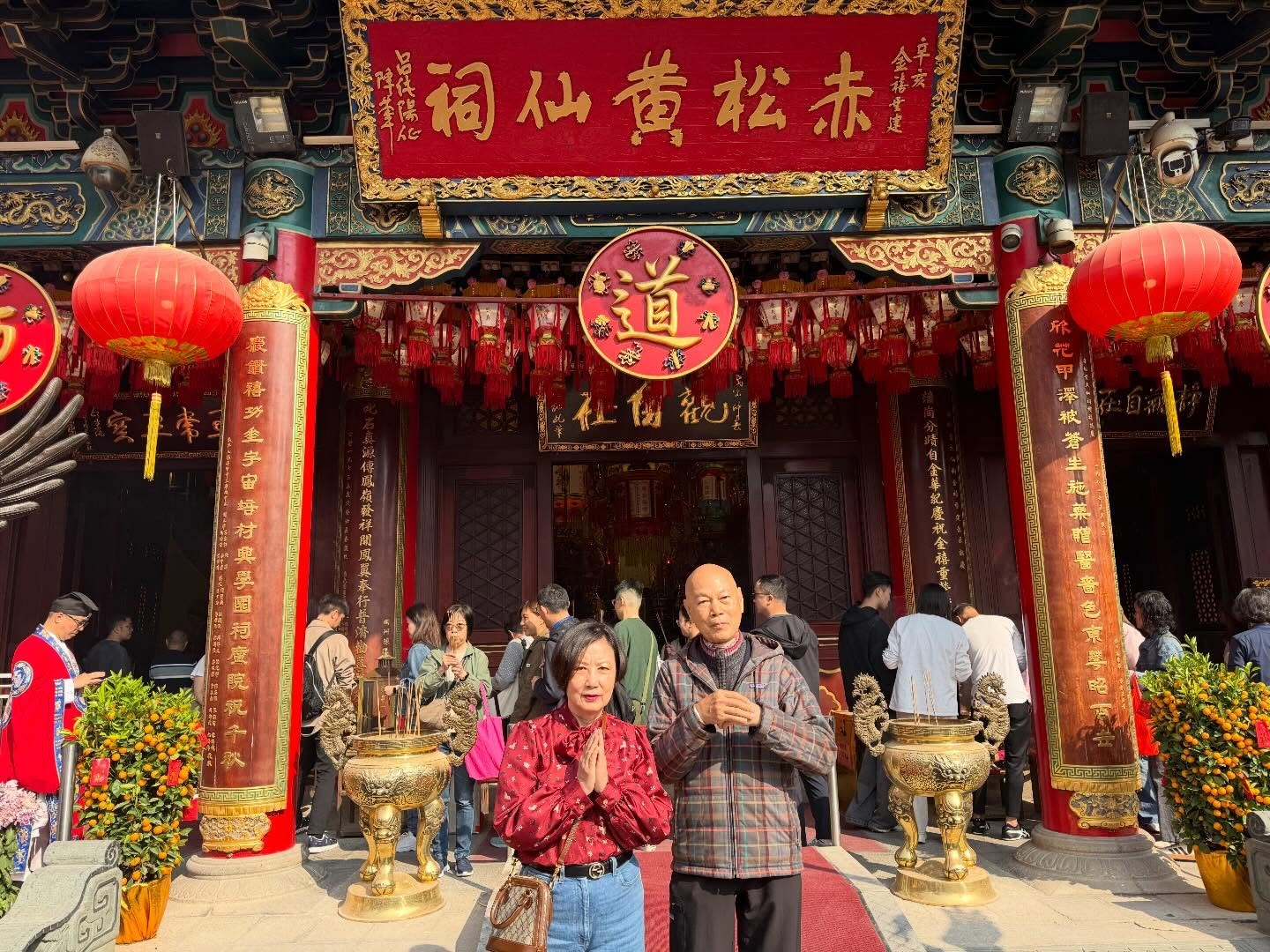 農曆新年唔少人都會去黃大仙祠、車公廟等祈福,阿姐 汪明荃 年初六就與 羅家英 及親友一齊去到黃大仙嘅赤松黃大仙祠上香,二人祈福後更齊齊揀咗個風車同一個賀年掛件,阿姐喺社交平台分享到黃大仙祈福嘅照片,並於帖文寫道:「年初六,拜黃大仙。」![]()