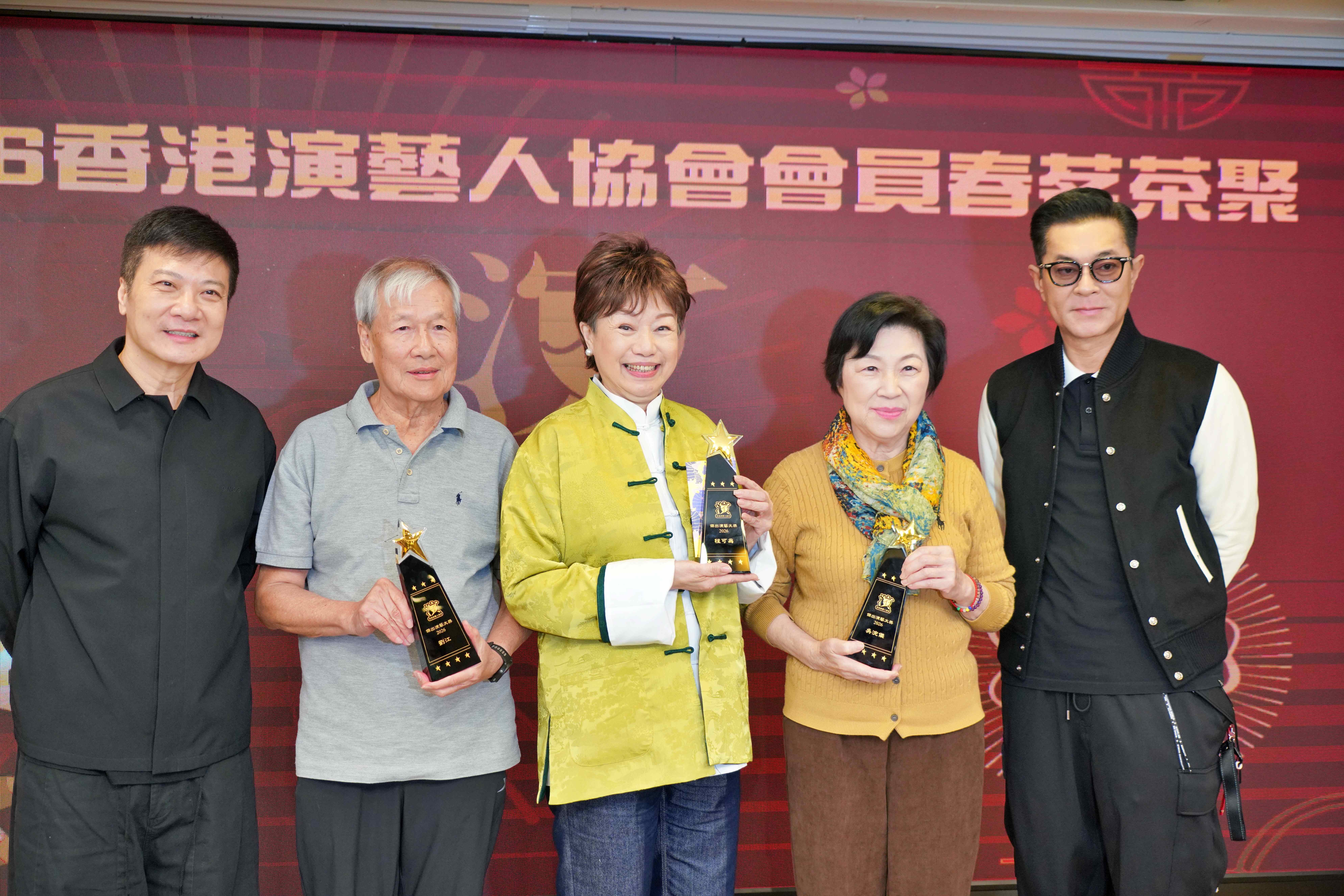 席間頒發「傑出演藝大獎」以表揚過去多年來為演藝界貢獻良多嘅前輩藝人,今年由吳浣儀、程可為、劉江榮膺獎項,三人喺古天樂及錢嘉樂手中接過獎項,期間吳浣儀、劉江不約而同表示自己係首次出席演藝人協會活動,劉江話:「好多謝大家冇忘記我,自己唔習慣參加呢啲場合,性格比較內向,今日第一次出席。平時喺TVB成日見到大家,感覺係理所當然,但原來唔喺TVB嘅話要見面係好難,今日見番大家好開心,多謝大會頒呢個獎,我覺得自己未有資格。」