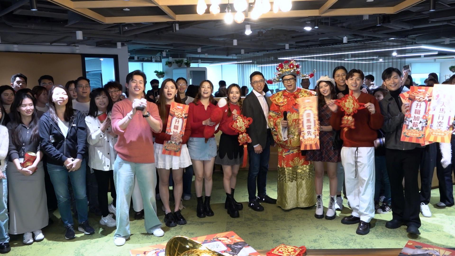 TVB一眾藝員曾展望GM、葉蒨文SophieYip、羅毓儀YukiLaw、游嘉欣KayanYau、劉頌鵬、周志康及陳懿德,呢日由財神安德尊率領向TVB合作夥伴拜年,一齊大派利是送祝福兼玩遊戲互動,場面熱鬧。![]()