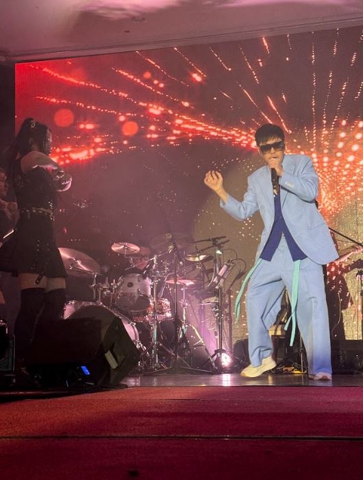 思捷席間貫徹「扮嘢王」作風,獻唱譚詠麟、鄭少秋、張國榮及四大天王等多首名曲,並邀請《中年好聲音2》季軍顏米羔擔任嘉賓合唱,將氣氛炒熱至最高點。